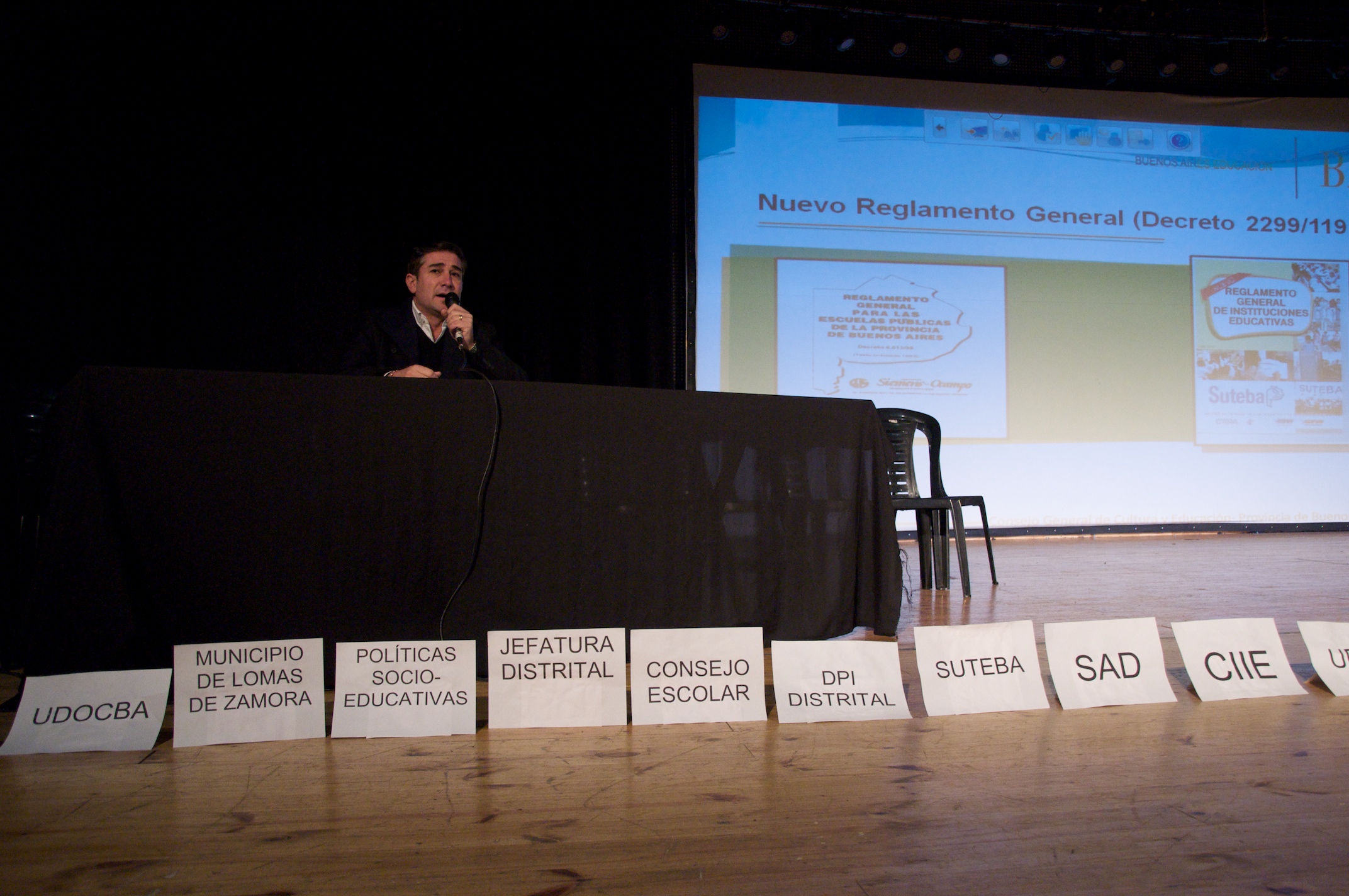 Durante la jornada a la cual asistieron más de 200 directivos de establecimientos educativos del distrito de Lomas de Zamora, se abordaron temas referidos al Reglamento General de las Instituciones Educativas, a cargo del compañero de SUTEBA Marcelo Zarlenga, Consejero del Consejo Gral. de Cultura y Educación de la Prov. de Buenos Aires; y al Plan de Prevención de Riesgos, a cargo de responsables del Programa GIRE, dependiente de la DPIE. Expusieron también especialistas en materia de salud y seguridad para desarrollar contenidos y prácticas inherentes a los planes de emergencia y evacuación en las escuelas.
