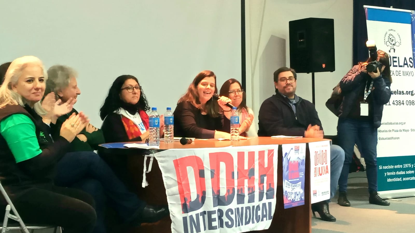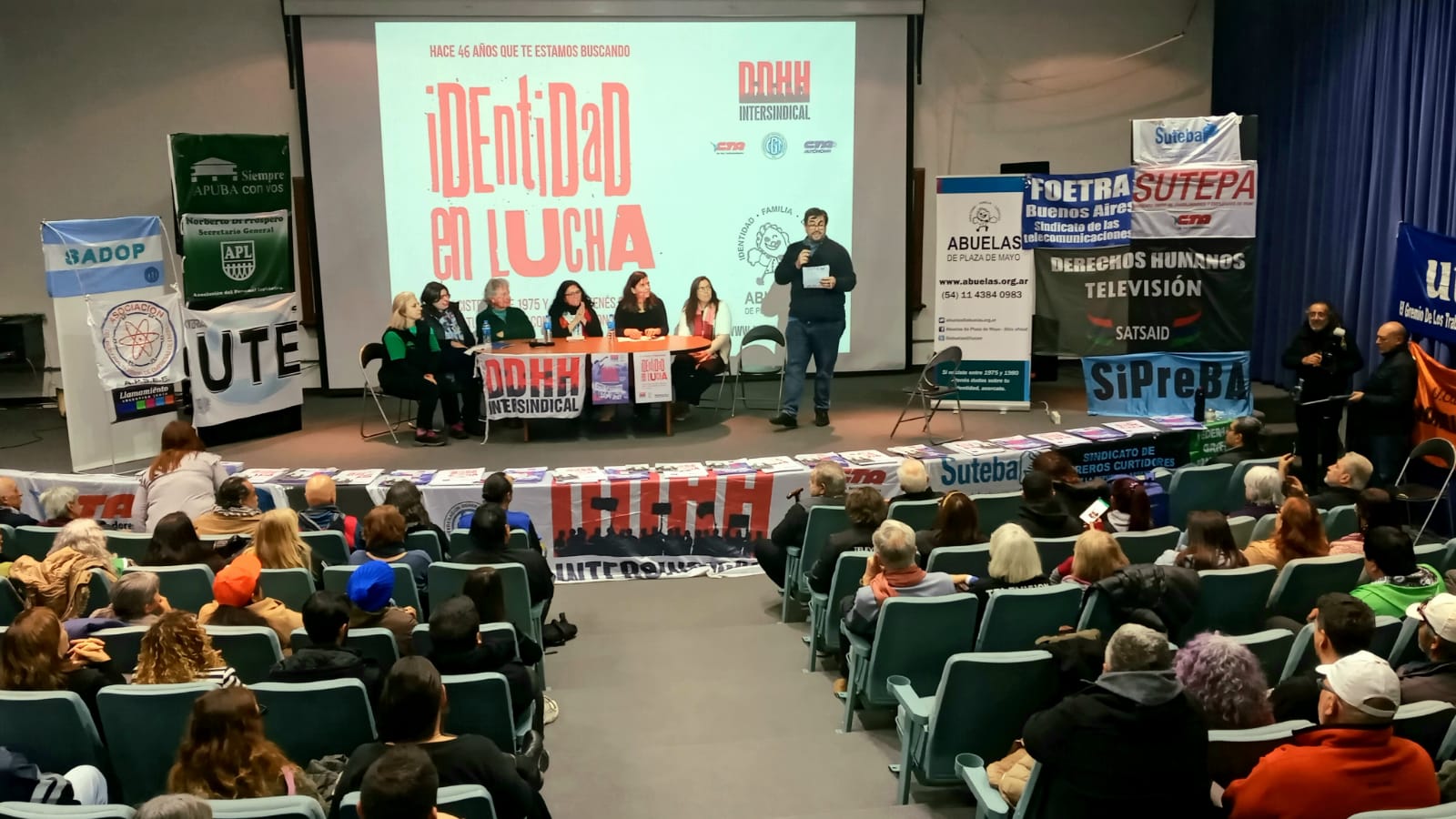 Ante un auditorio colmado de Trabajadorxs pertenecientes a diferentes Sindicatos y gremios que componen la Intersindical de DDHH, junto a nietxs restituidxs por la lucha de Abuelas y al Secretario de la institución, Abel Madariaga; se realizó una conferencia de prensa en la que referentes de la Intersindical expresaron los sentidos históricos y políticos que gestaron esta nueva propuesta, que busca aunar esfuerzos para promover y consolidar la búsqueda de lxs nietxs que nos faltan restituir.