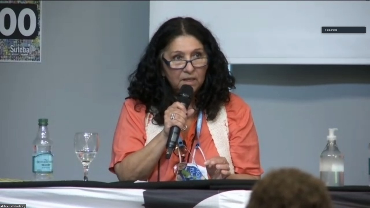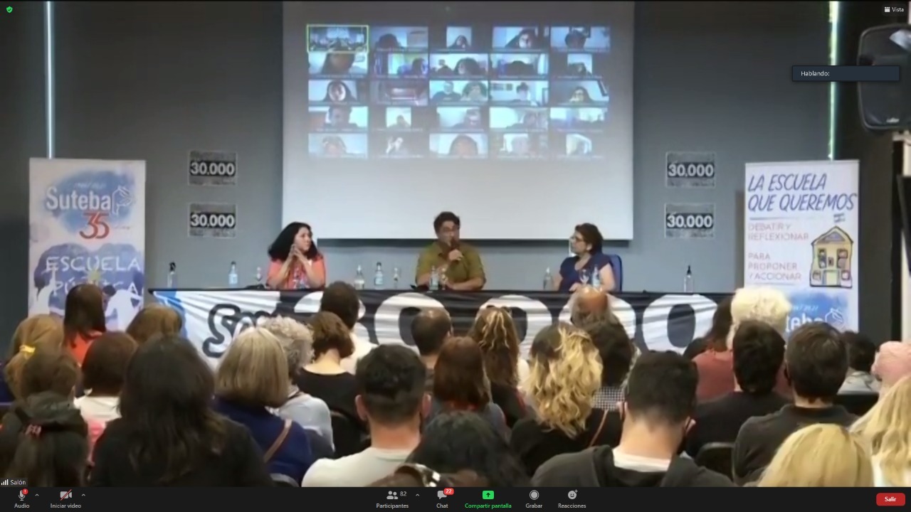 Dando inicio a la actividad, María Laura Torre reivindicó los 44 años de lucha de las Abuelas y de las Madres y recordó que el 22 de octubre es el día nacional del Derecho a la Identidad. "Pero este saludo a todxs tiene que ver con reafirmar y ratificar nuestro ADN, en este cumpleaños 35 de nuestra Organización Sindical. Nacimos al calor de las Madres y de las Abuelas de Plaza de Mayo, porque es el mismo ADN que inscriben en la historia nuestras Madres, ese ADN del deseo, de la pasión, de la memoria, de un compromiso ético, político y pedagógico", dijo, y agregó que "es muy importante que llevemos a las aulas este debate y la construcción de esta memoria que se hace colectivamente".