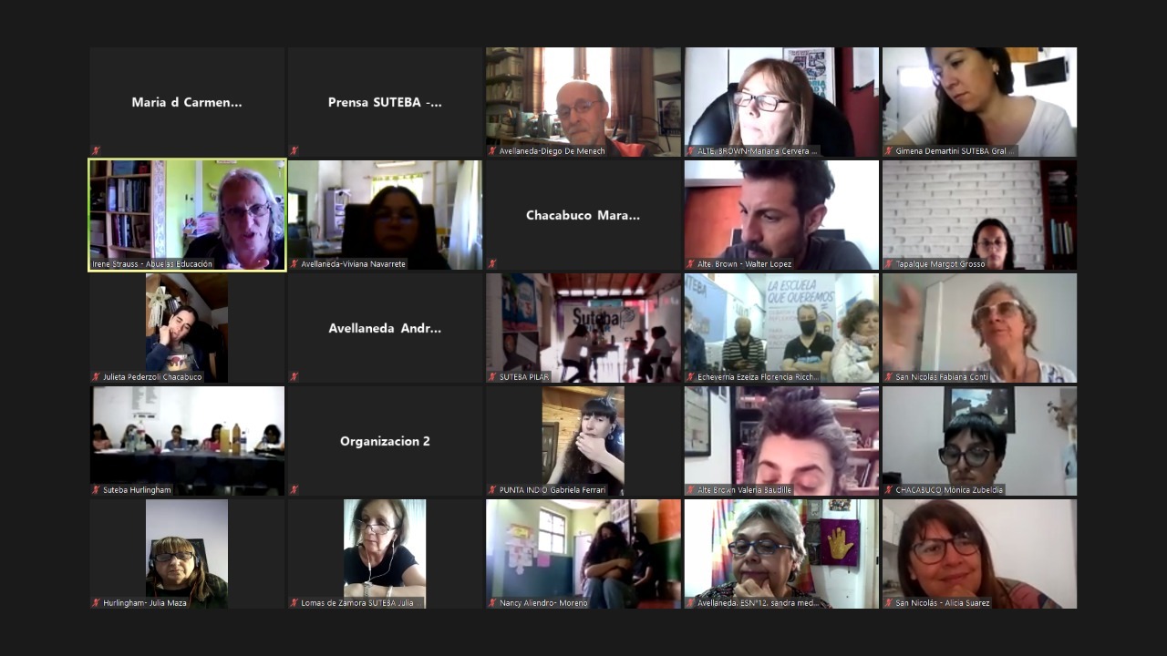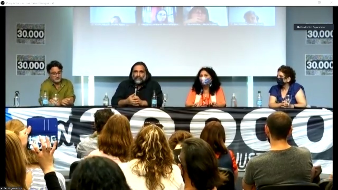 El panel estuvo integrado por: Irene Strauss, Responsable de Educación de Abuelas de Plaza de Mayo; Leonardo Fossati, Nieto restituido, Coordinador del Espacio de la Memoria ex Comisaría 5ta de La Plata; y Cristina Echegoyen, Secretaria de Igualdad de Géneros y Diversidad del SUTEBA.