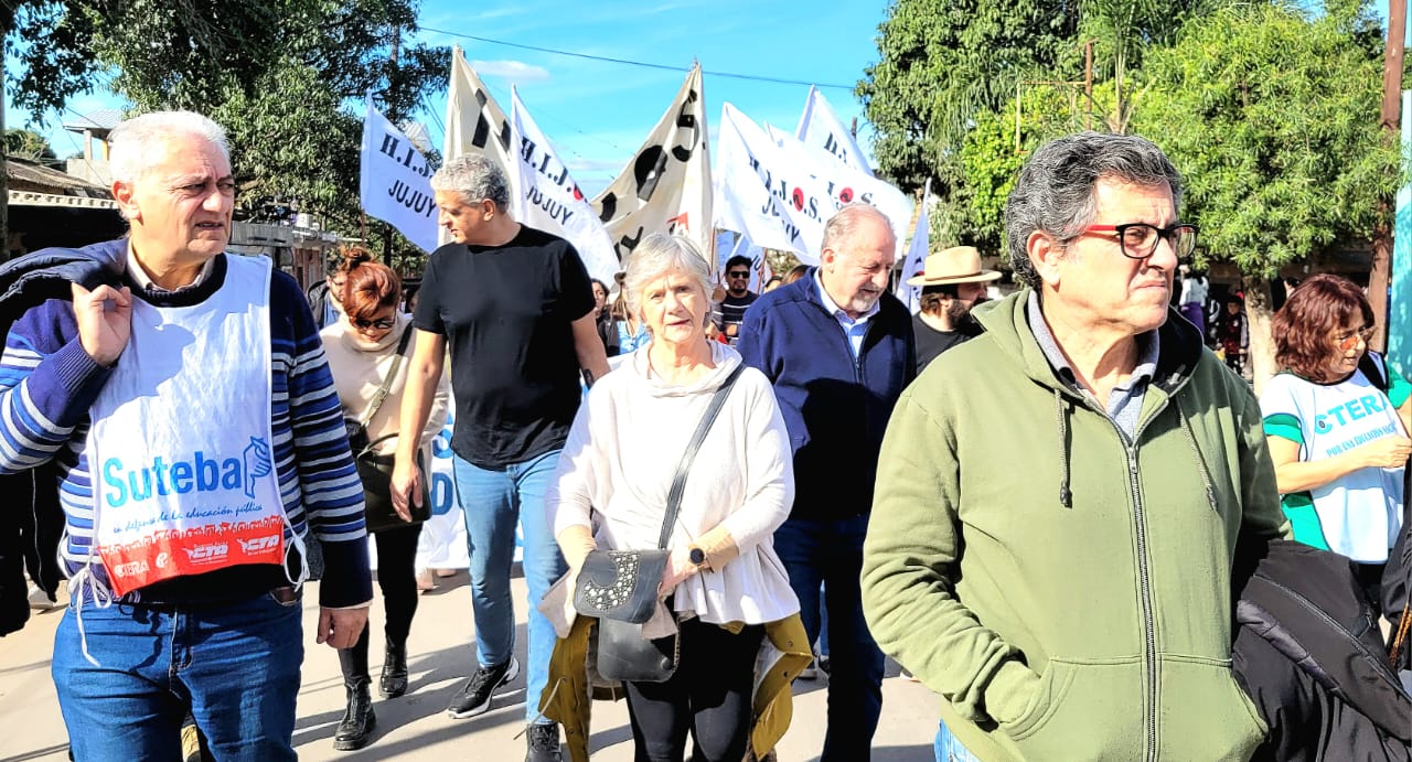 La comitiva del SUTEBA se movilizó de Calilegua a Libertador General San Martín, en el departamento de Ledesma, para recordar las más de 400 detenciones y 33 desapariciones ocurridas durante la última dictadura cívico militar. La misma estuvo integrada por Silvia Almazán, Secretaria General Adjunta; José Luis Nogueira, Secretario de Servicios de Salud y Sociales; Mariela Preuss, Subsecretaria de Salud Laboral; Florencia Riccheri, Subsecretaria de Planeamiento, Investigación y Estadística Educativa; Silvina Furgat, Secretaria de Educación Primaria; Patricia Martínez, Secretaria General del SUTEBA Las Heras, y José Taberna, integrante de FECOOPTEBA.