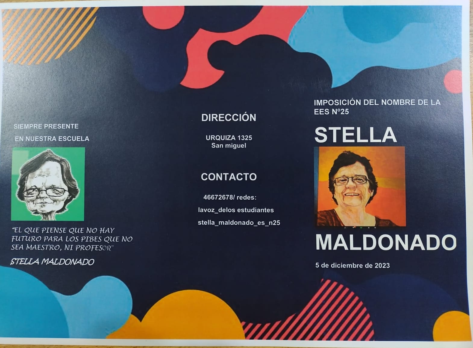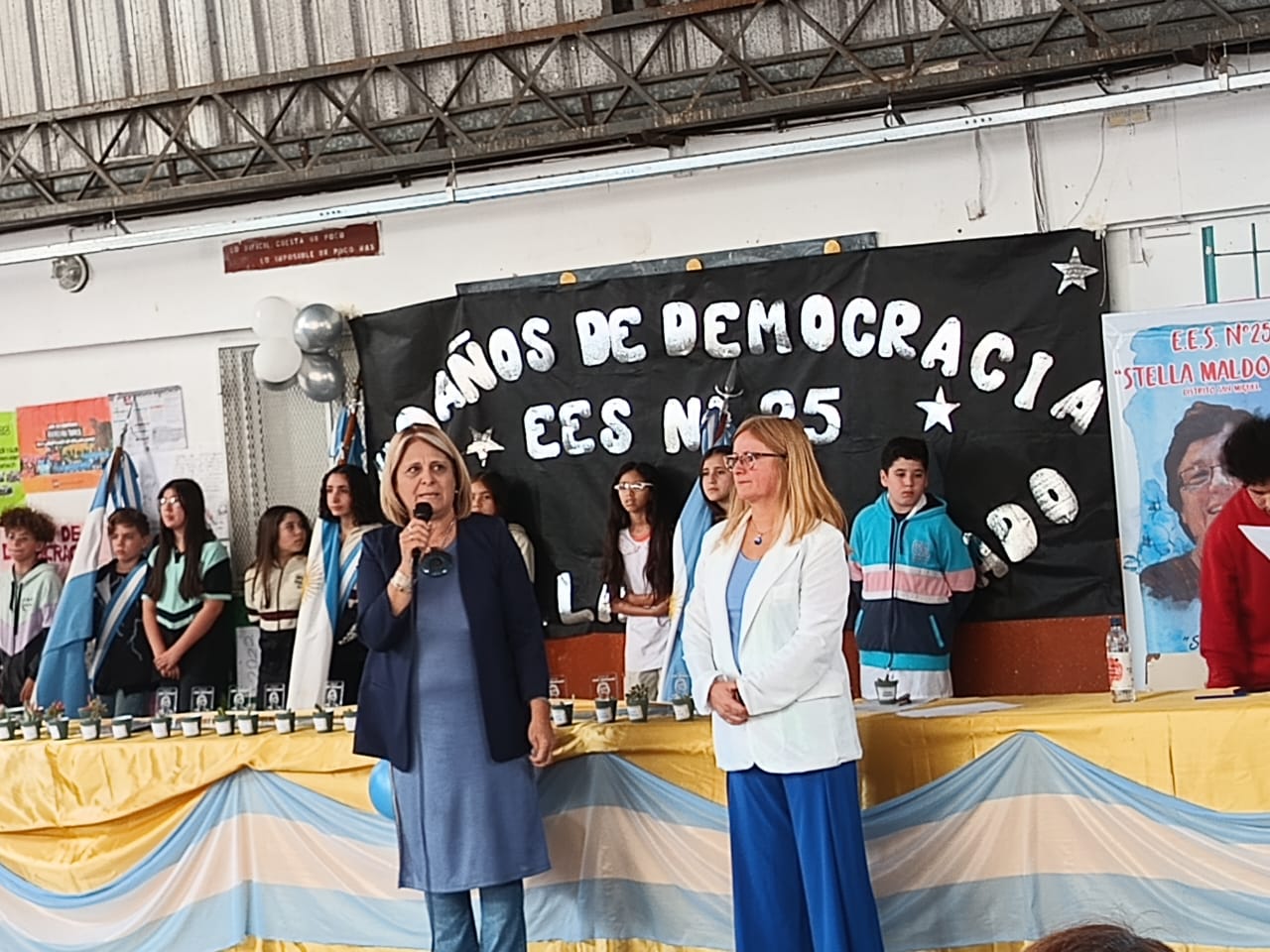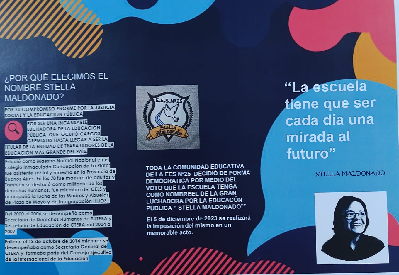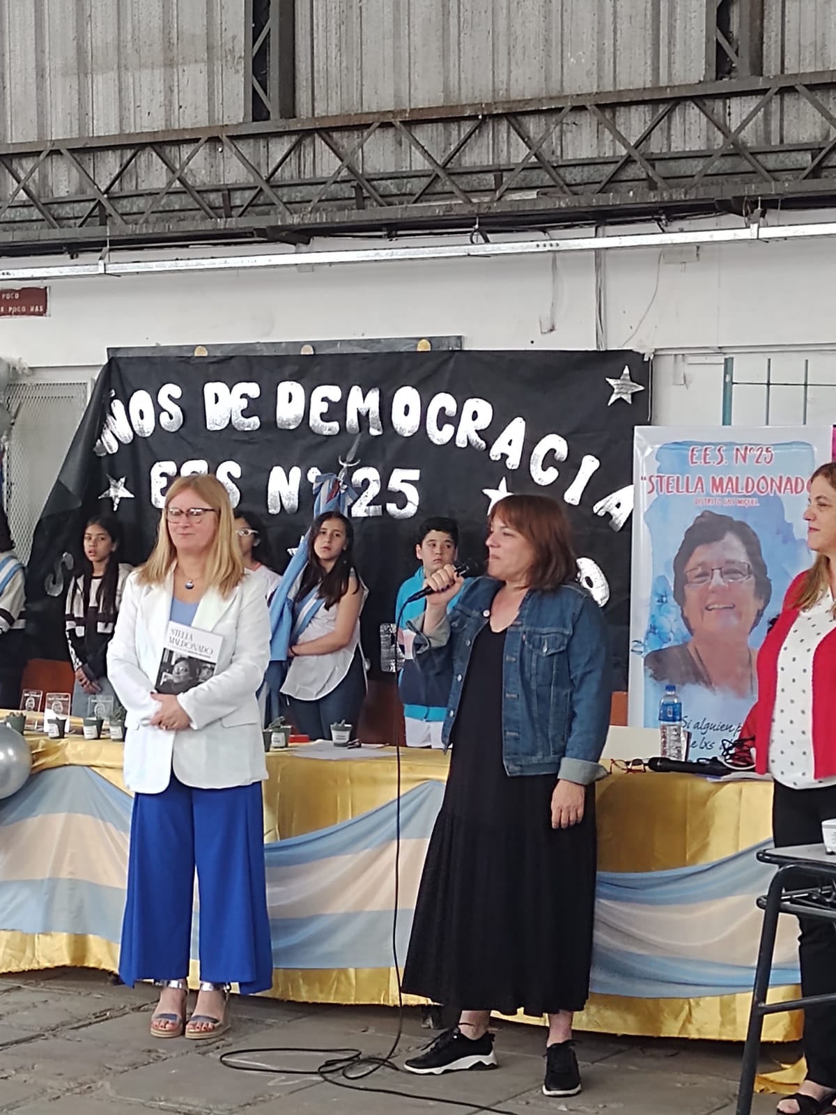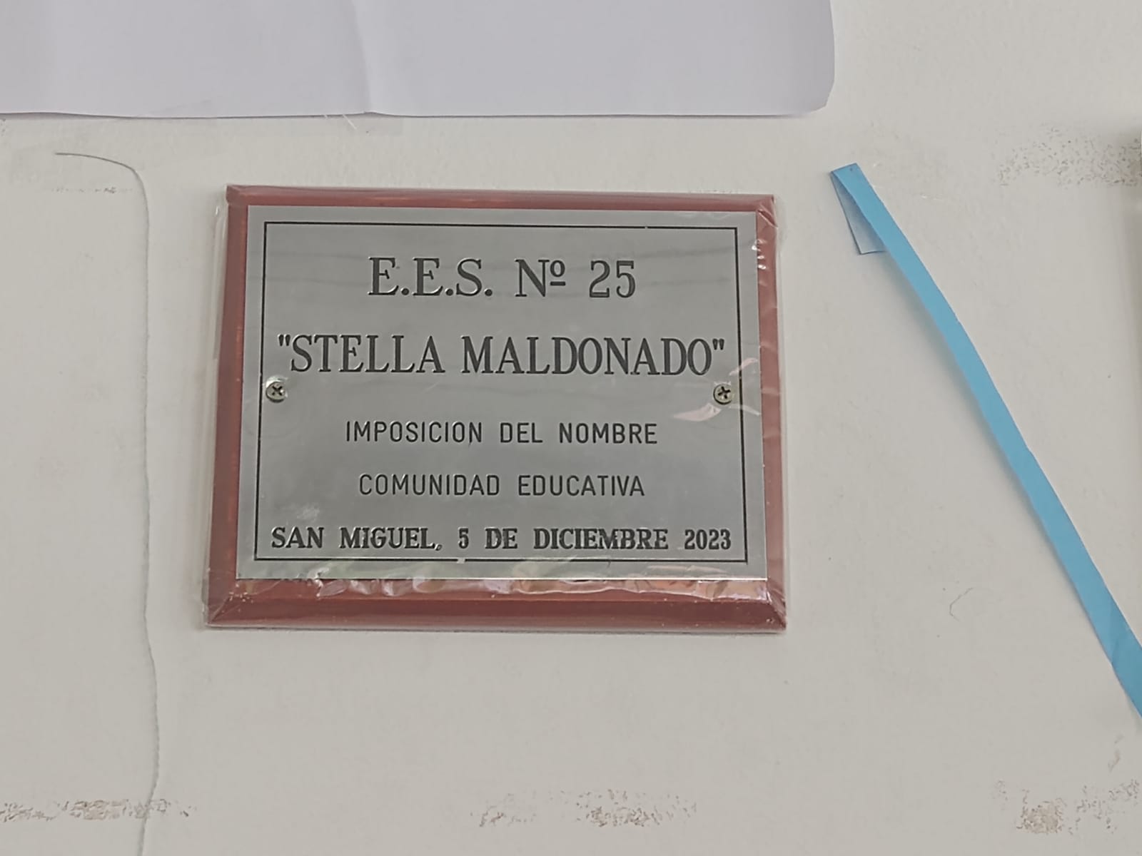 Con la participación de las hijas de Stella, Ana Teplitzky e Inés Dalio; su gran compañera y amiga Graciela "Cacha" Rodríguez y toda la Comunidad Educativa, se realizó hoy la imposición del nombre "Stella Maldonado" a la Escuela Secundaria Nº 25 de San Miguel.