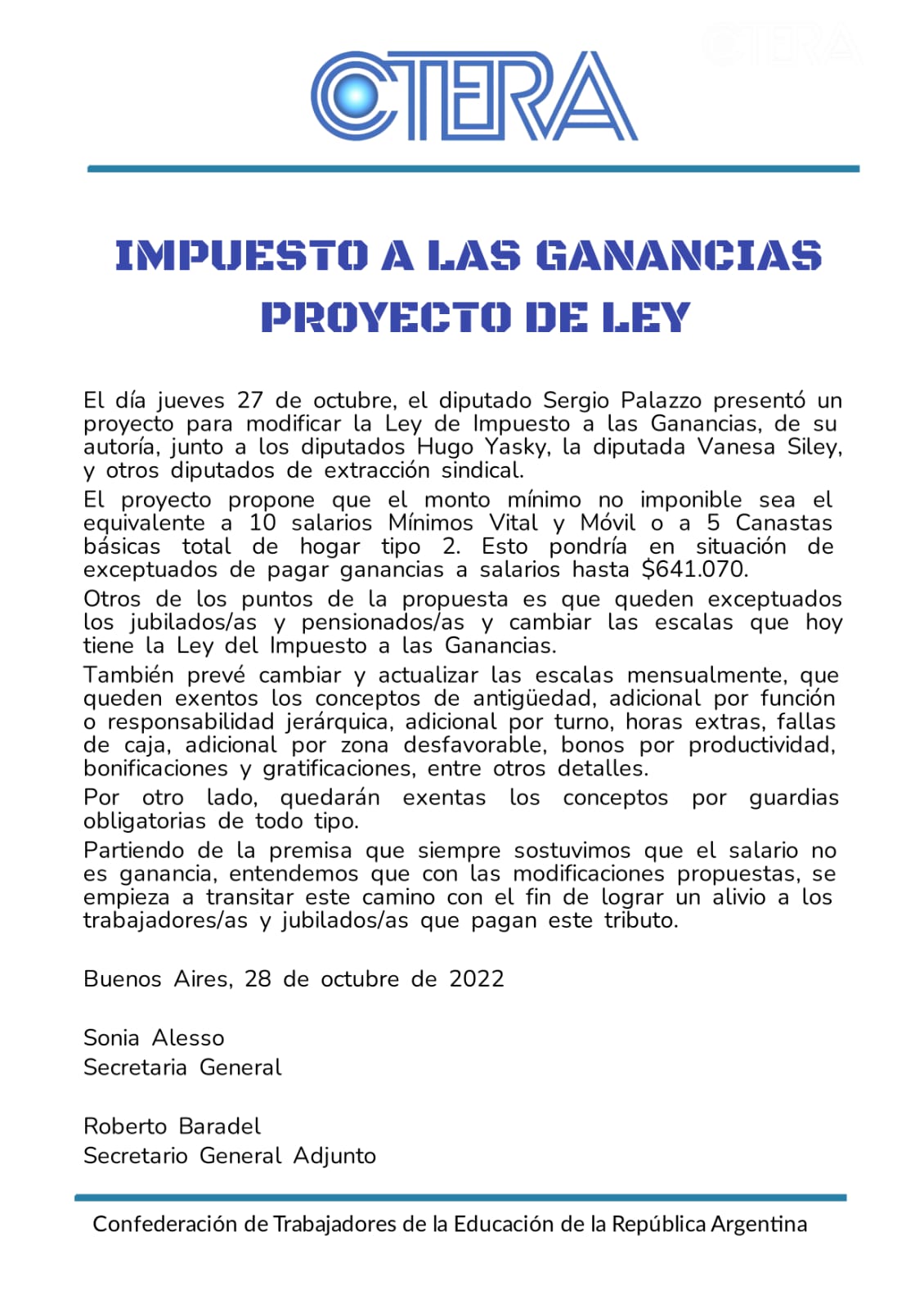 IMPUESTO A LAS GANANCIAS: PROYECTO DE LEY