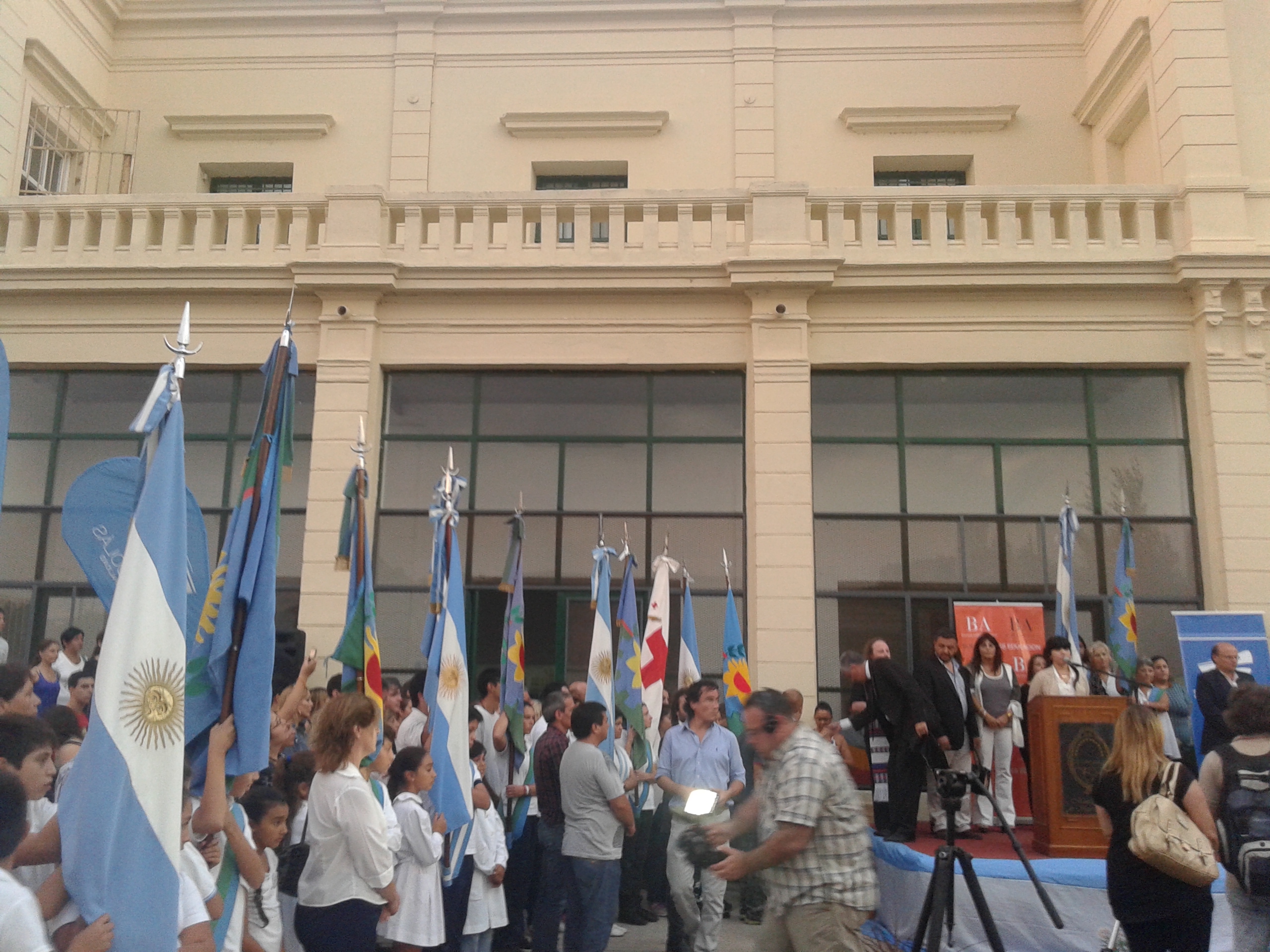 La bienvenida estuvo a cargo del director del establecimiento Prof. Rubén Chiavia, luego brindaron unas palabras el Intendente y la Dra. Gral de Cultura y Educación. Por su parte, Passaglia agradeció la gestión de los miembros de la comunidad educativa junto a los gremios docentes. Quedó reflejado en su discurso el resultado de NUESTRA LUCHA por la discusión de los destinos del Fondo de Financiamiento Educativo, reconociendo la entidad a la UEGD, espacio en el que se definen las prioridades distritales en cuanto a infraestructura escolar. Se hizo hincapié en las obras terminadas y las que están llevándose a cabo, al mismo tiempo se anunció el cambio de todos los tanques de agua de las escuelas de la ciudad y se confirmó que uno de los responsables del relevamiento de los datos necesarios será el SUTEBA.
