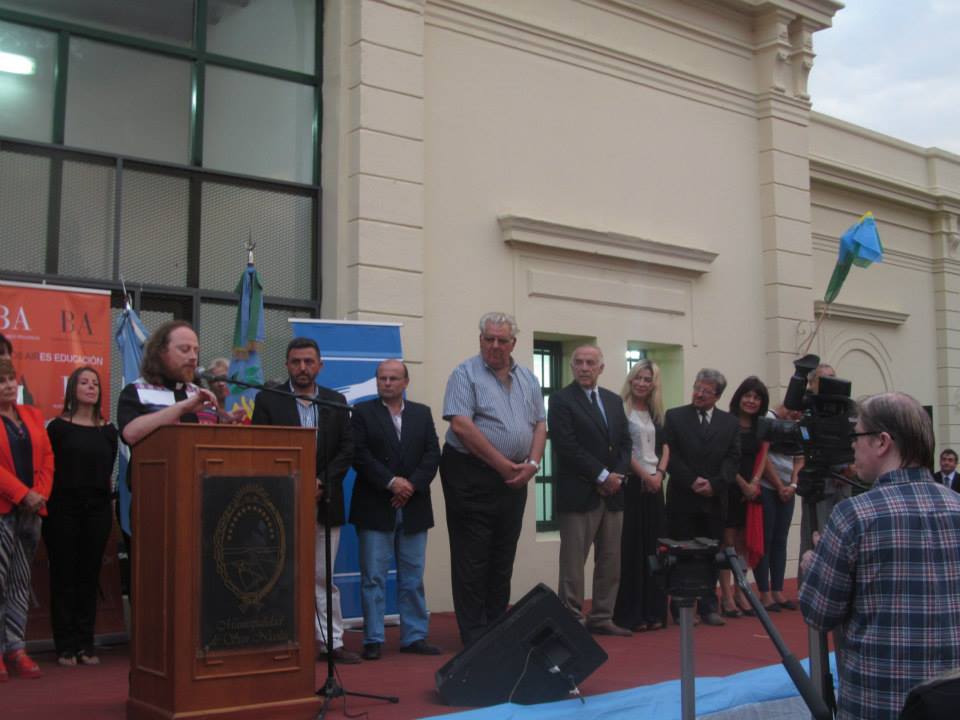 La bienvenida estuvo a cargo del director del establecimiento Prof. Rubén Chiavia, luego brindaron unas palabras el Intendente y la Dra. Gral de Cultura y Educación. Por su parte, Passaglia agradeció la gestión de los miembros de la comunidad educativa junto a los gremios docentes. Quedó reflejado en su discurso el resultado de NUESTRA LUCHA por la discusión de los destinos del Fondo de Financiamiento Educativo, reconociendo la entidad a la UEGD, espacio en el que se definen las prioridades distritales en cuanto a infraestructura escolar. Se hizo hincapié en las obras terminadas y las que están llevándose a cabo, al mismo tiempo se anunció el cambio de todos los tanques de agua de las escuelas de la ciudad y se confirmó que uno de los responsables del relevamiento de los datos necesarios será el SUTEBA.
