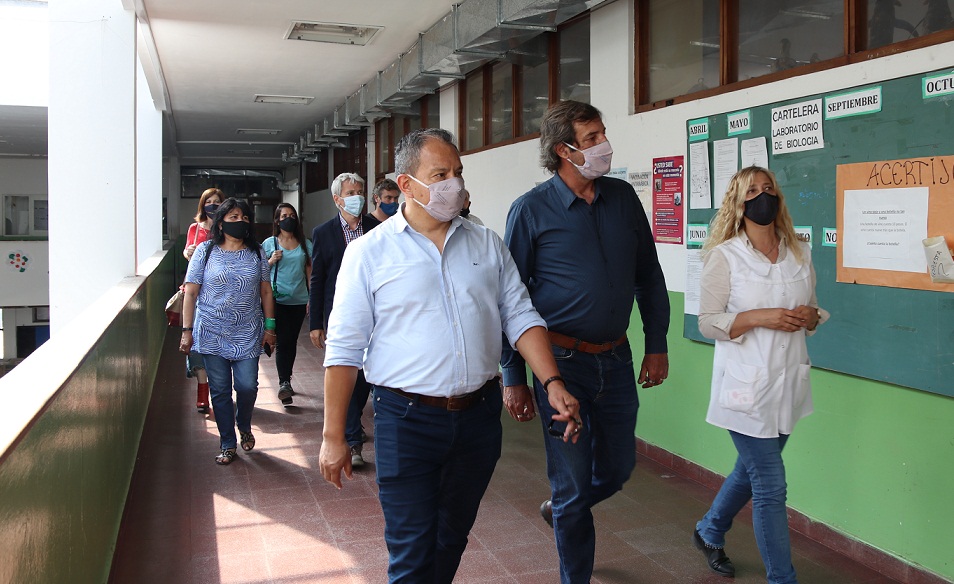 A lo largo de una extensa jornada de trabajo, también se realizaron reuniones con representantes del Consejo Escolar y de la Jefatura Distrital y Regional, quienes presentaron un informe de la situación al Subsecretario de Infraestructura provincial, Ariel Lambezat, y a Lucas Bolla, asesor de la Directora General de Escuelas, Agustina Vila.