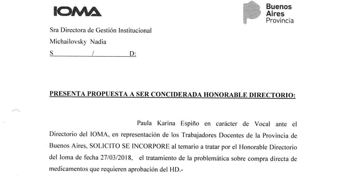 Por todo lo expresado, pidió formalmente la búsqueda de soluciones que impliquen una mejora en la respuesta a los afiliados, convocó a debatir alternativas al sistema actual de aprobación de los trámites con los responsables de las áreas involucradas dentro de la institución: los equipos técnicos, los gremios que participan en Consejo Consultivo y las autoridades del IOMA que tienen la obligación de llevar adelante la gestión de estos cambios.