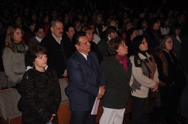 Llegando al final del día, Eduardo López hizo un repaso histórico de la educación en el país. Habló de Manuel Belgrano, y de lo que él donó para construir escuelas: “Nuestros revolucionarios ya pensaban en la escuela pública”. Después hizo una “ecuación” muy simple pero real: “Cuando al país le va bien, a la educación le va bien. Cuando se avanza con los trabajadores y el pueblo, se avanza en la educación. Siempre que hubo dictaduras o gobiernos de derecha la educación retrocedió, siempre que hubo gobiernos populares la educación avanzó.” Se tomó unos momentos para despotricar contra Mauricio Macri y la clase política de derecha: “Toda la política de Macri apunta a que no enseñemos. La diferencia entre la derecha y nosotros es que ellos piensan que la sociedad se divide entre triunfadores y fracasados. Ellos serían los triunfadores y los demás los perdedores. Para nosotros la sociedad se divide en los que nacieron con oportunidades y los que no. Nosotros luchamos por la educación y la salud pública para los que no tuvieron oportunidades en la vida.”