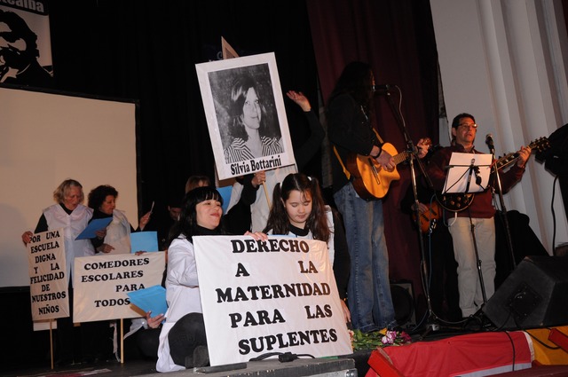 Cecilia Martinez dirigió unas emotivas palabras manifestando un profundo y sincero reconocimiento a Rocio Martinez y a Silvia Bottarini compañeras docentes desaparecidas. Fueron invitados, en ese marco, los hijos de Rocío Camilo y Bárbara y el hermano de Silvia, Roberto Bottarini,a subir al escenario. Ambos agradecieron el reconocimiento. “Me hace sentir muy orgulloso que su lucha no fue en vano porque ustedes están unidos y continuando esa lucha, sin bajar los brazos”, dijo Camilo.