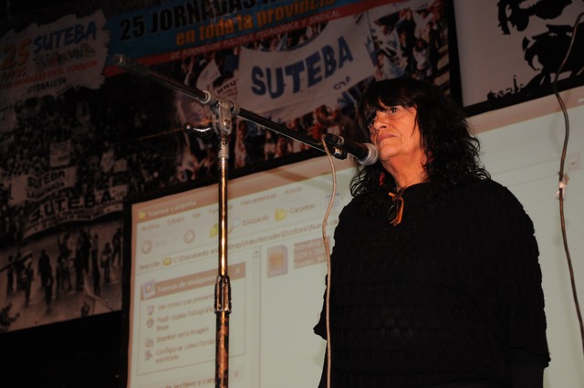 Al final, fue el turno de Stella Maldonado quien habló de la fundación de CTERA, del SUTEBA, de lo logrado y de lo que falta lograr. “Nuestros logros no deben impedir ver que cuestiones nos faltan”, reflexionó Maldonado. Dijo además: “No podemos desechar las ideas de calidad educativa y evaluación. Tenemos que poder introducir en la negociación colectiva una agenda muy clara y minuciosa acerca de estas condiciones para mejorar la calidad de nuestro trabajo para,así, mejorar la calidad de la educación”. Terminó diciendo: “Hasta que no hagamos transformaciones profundas y culturales alrededor de cómo se organiza nuestro trabajo, cómo la institución escolar, cómo convertimos a la escuela en un centro cívico de cada comunidad. Hasta que no consigamos todo eso, no vamos a lograr una escuela pública emancipadora”.