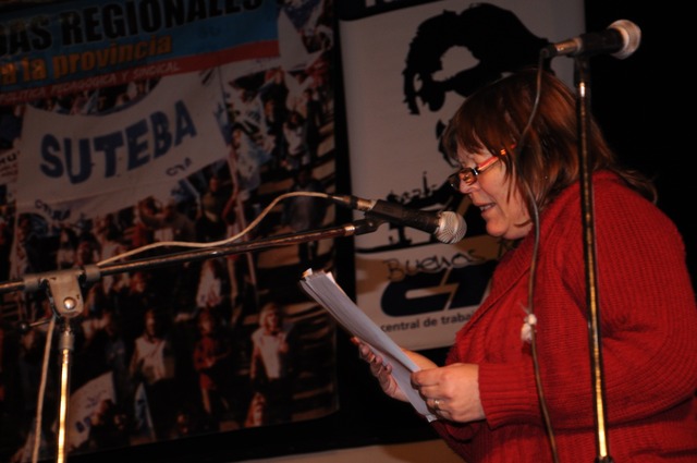 Al final, fue el turno de Stella Maldonado quien habló de la fundación de CTERA, del SUTEBA, de lo logrado y de lo que falta lograr. “Nuestros logros no deben impedir ver que cuestiones nos faltan”, reflexionó Maldonado. Dijo además: “No podemos desechar las ideas de calidad educativa y evaluación. Tenemos que poder introducir en la negociación colectiva una agenda muy clara y minuciosa acerca de estas condiciones para mejorar la calidad de nuestro trabajo para,así, mejorar la calidad de la educación”. Terminó diciendo: “Hasta que no hagamos transformaciones profundas y culturales alrededor de cómo se organiza nuestro trabajo, cómo la institución escolar, cómo convertimos a la escuela en un centro cívico de cada comunidad. Hasta que no consigamos todo eso, no vamos a lograr una escuela pública emancipadora”.
