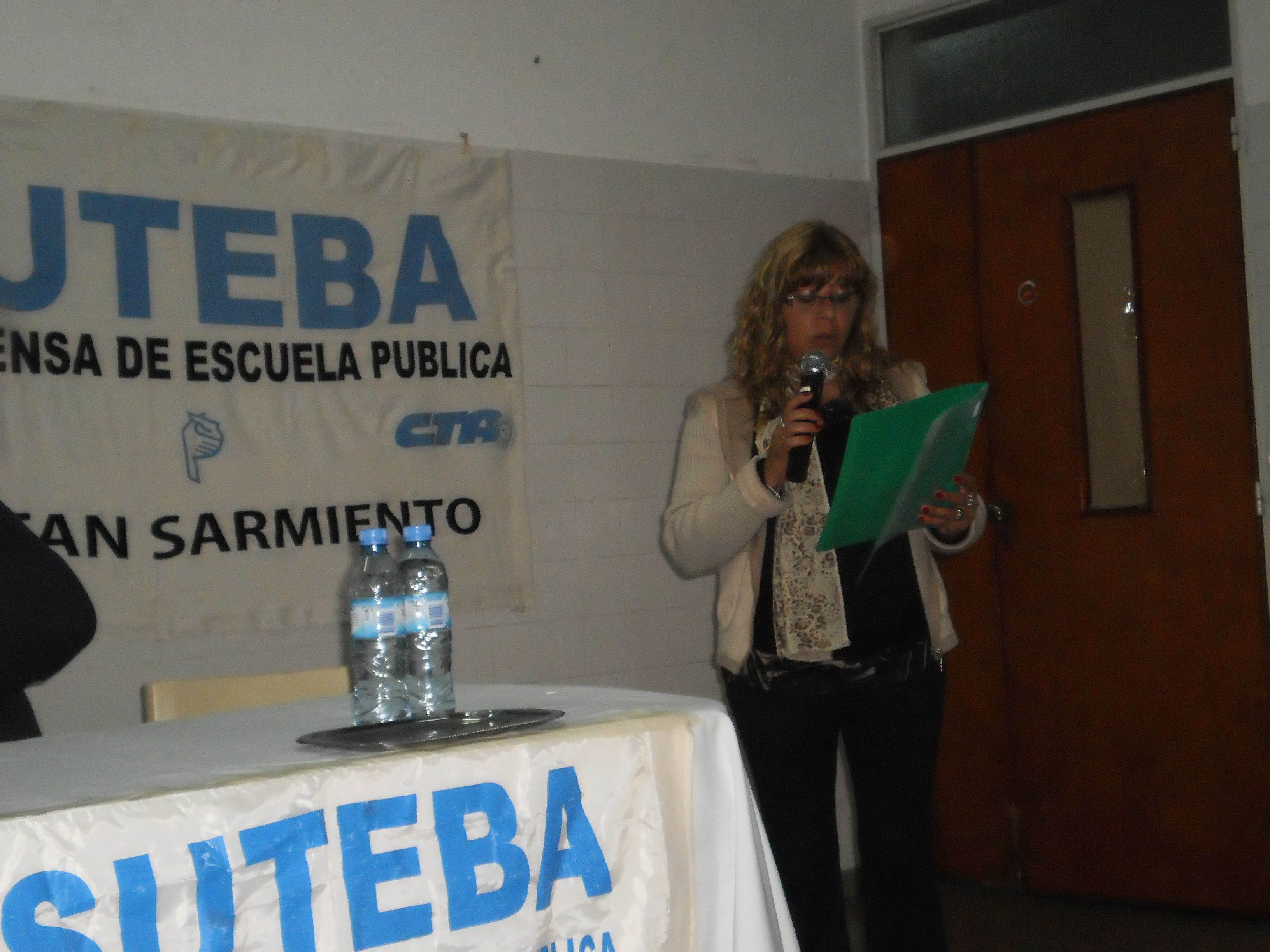 En la apertura de la jornada, la compañera Alejandra Otero, representante del SUTEBA en Capitán Sarmiento, hizo referencia al compromiso del SUTEBA con la Escuela Pública y a la importancia de la construcción conjunta como camino a seguir para lograr las mejores condiciones de enseñar y aprender para nuestros pibes y nuestros compañeros y compañeras.