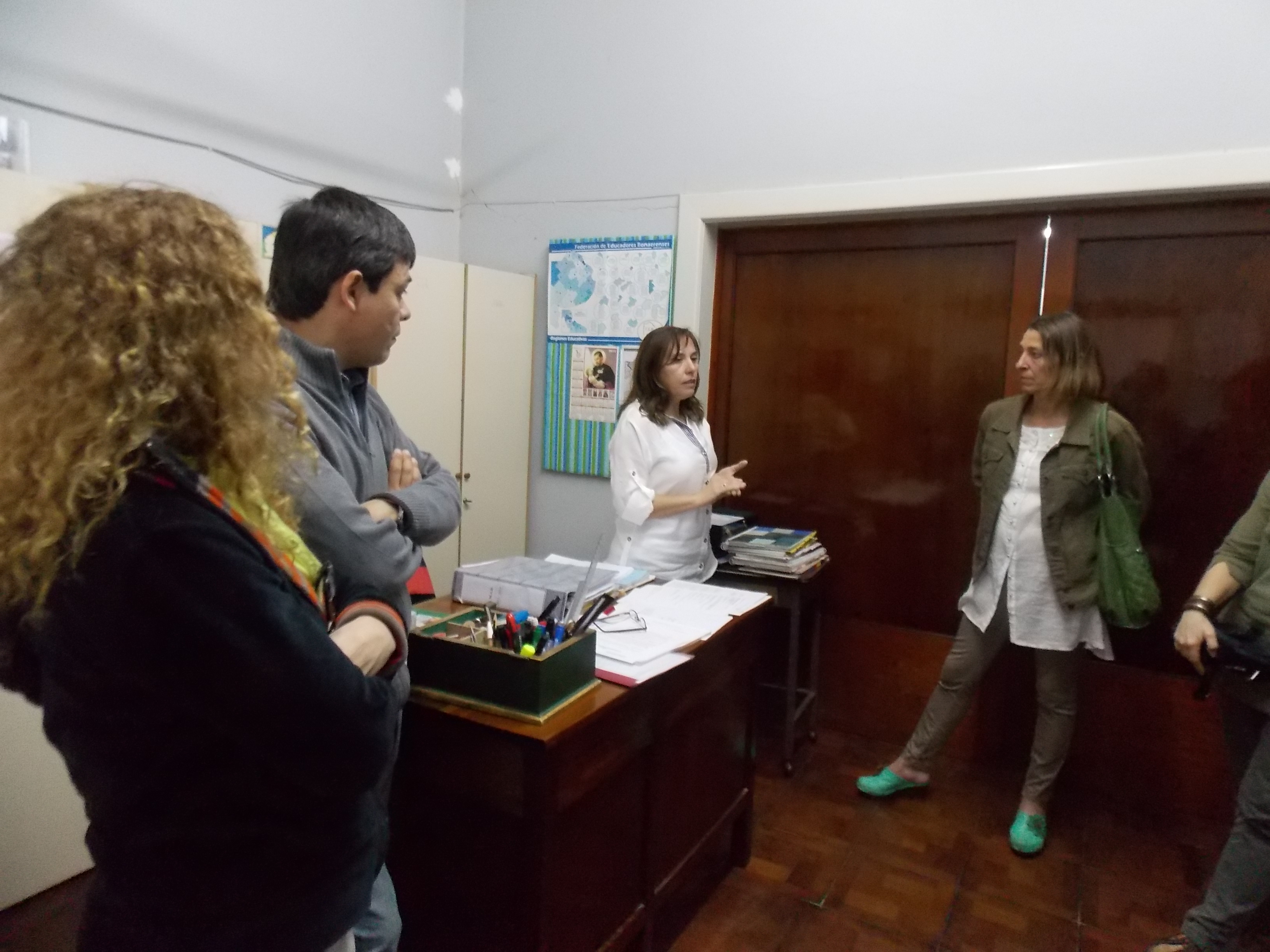 En forma simultánea, la Secretaria Gremial María Laura Torre, junto a los representantes de Educación Primaria, Valeria Visotsky; de Educación Secundaria, Leonardo Meza; la Secretaria de Salud, Vilma Alvarado; la Subsecretaria de Salud y Medio Ambiente de Trabajo, Mariana Molteni; la Delegada Paritaria, Marta Bordas; y la Secretaria General SUTEBA Tres Lomas, Stella Maris Balbi, visitaron el Consejo Escolar interiorizándose de las problemáticas locales. Lo mismo hicieron en la Secretaría de Asuntos Docentes (SAD), donde fueron recibidos por la Sra. Gladis Ruffinatti y, en ese ámbito, se trataron temas referidos a las cargas de las altas en el distrito, la necesidad de contar con más personal en esa secretaría y los acuerdos paritarios que están ejecutándose.
