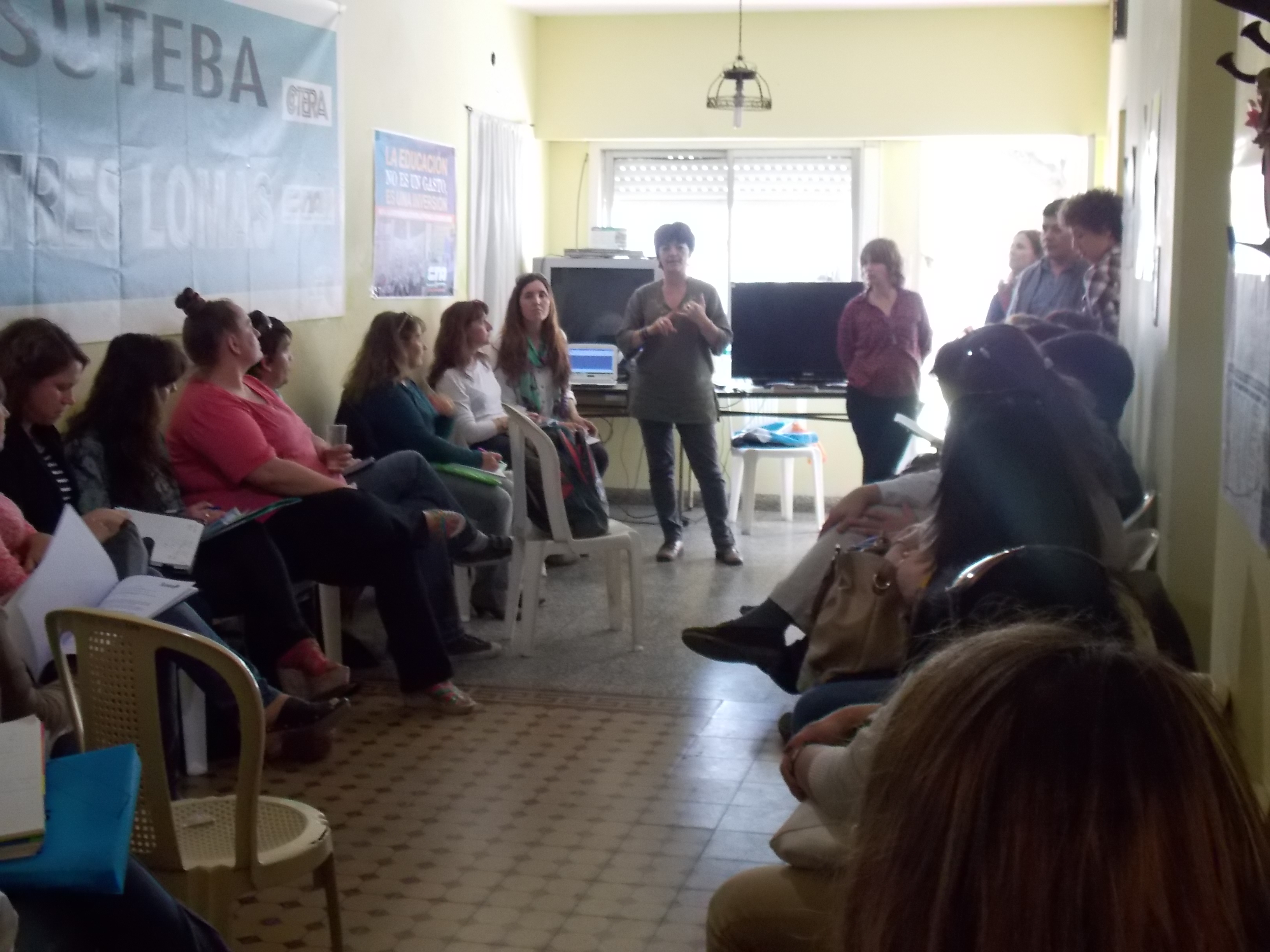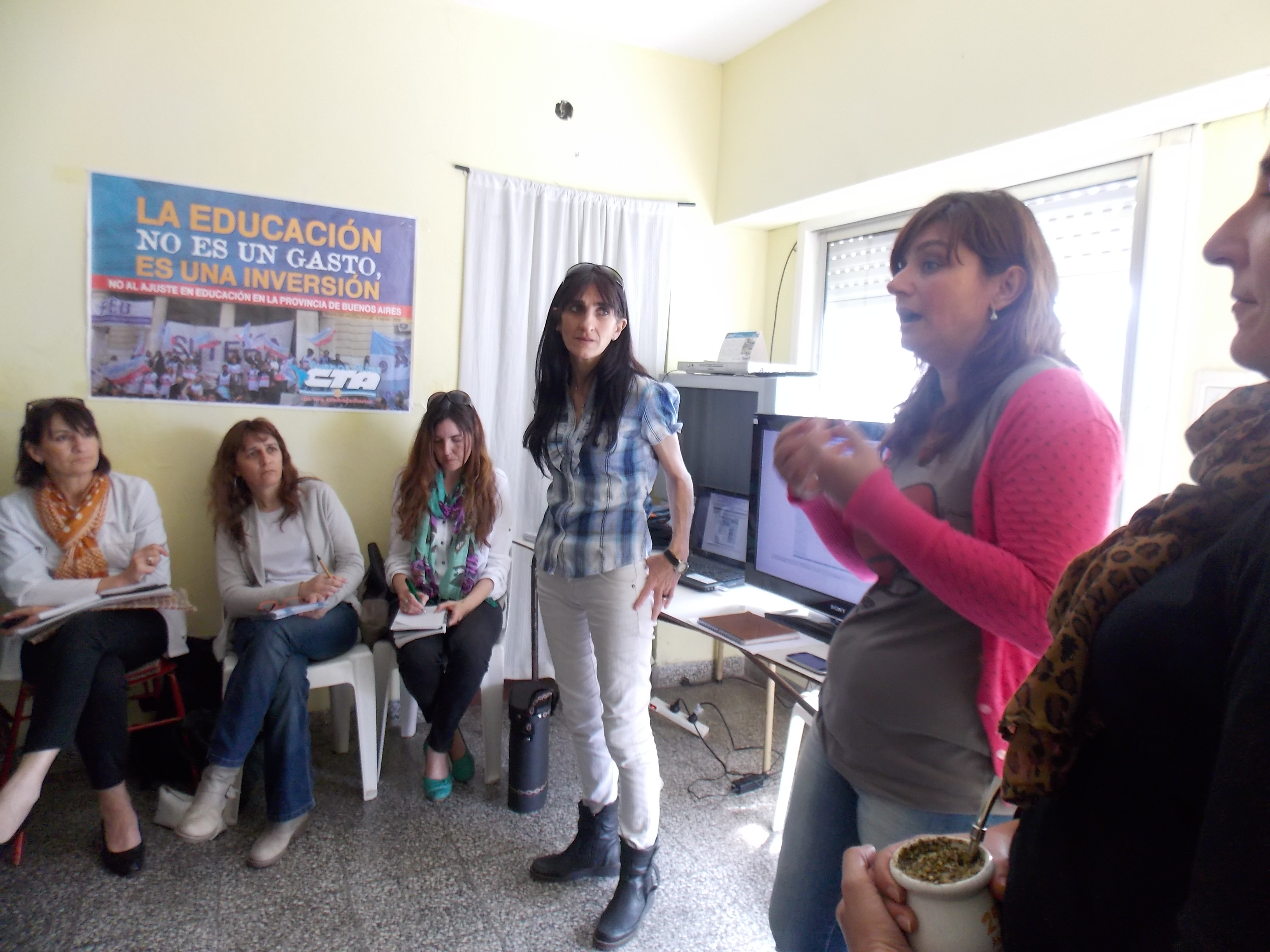 Luego, los representantes del CEP y las representantes del Consejo Ejecutivo Seccional, encabezado por Stella Maris Balbi, Secretaria General SUTEBA Tres Lomas, y Paola Otermín, Secretaria Gremial y de Jubilaciones, participaron de una conferencia de prensa en el que los medios de comunicación locales se informaron del accionar del Sindicato y de los avances en el distrito.
