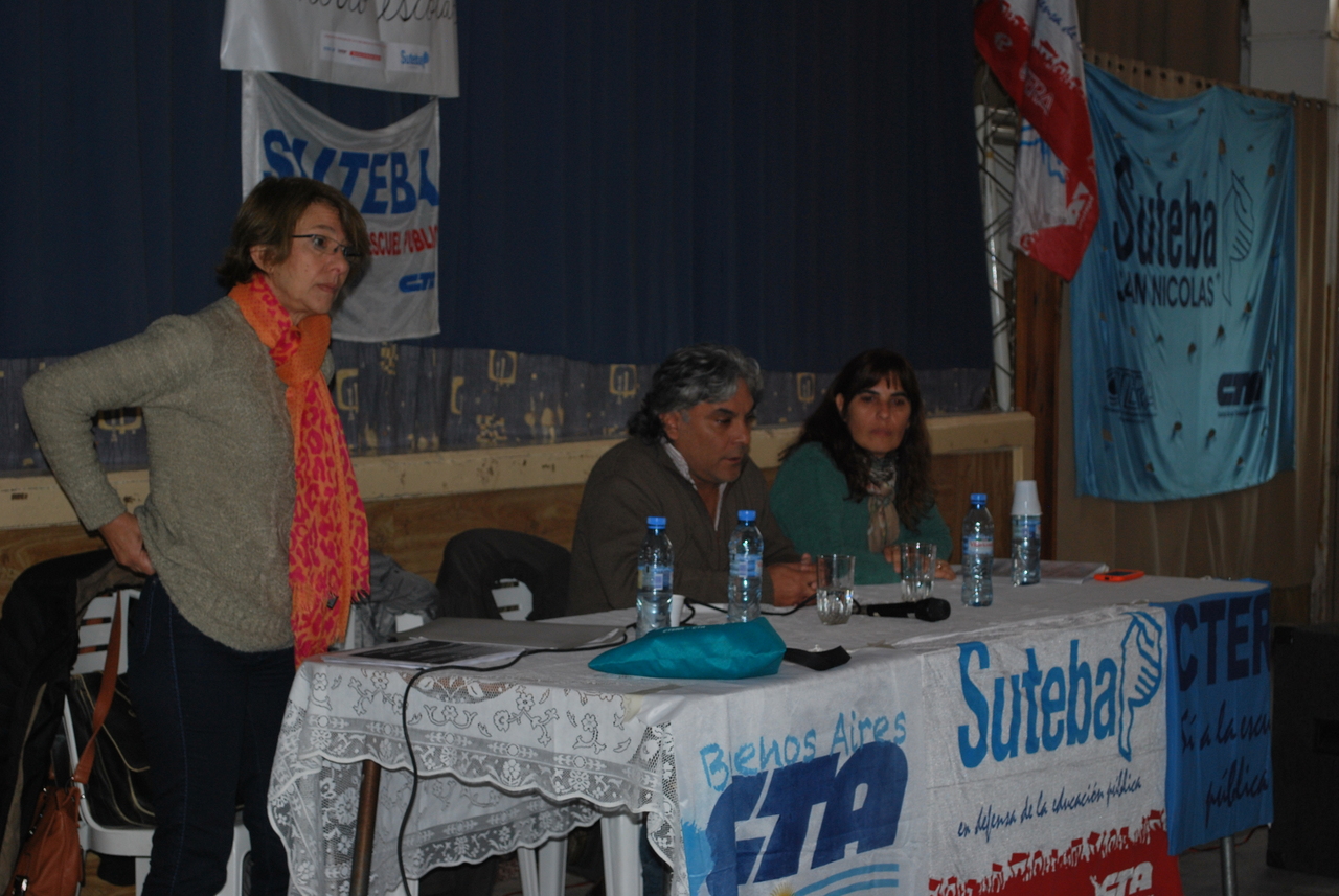 La apertura estuvo a cargo de Nancy Monti, Secretaria Adjunta SUTEBA San Nicolás, y Juan Muñoz, Secretario Organización de SUTEBA Prov, quien remarcó: "Desde la mirada de los trabajadores es fundamental reconocer que el primer generador de violencia es el sistema en el que vivimos, el sistema capitalista". A lo que agregó: "Desde la Escuela Pública venimos construyendo a lo largo de nuestra historia un discurso, una palabra, un mensaje donde dejamos claro que no deben suceder hechos de violencia de ninguna característica ni en la escuela, ni en la comunidad, trabajando desde la prevención y el compromiso. Entendiendo que en la medida en que no se modifiquen cuestiones estructurales de reparto de la riqueza, sólo podemos seguir luchando desde nuestro lugar de Trabajadores de la Educación".