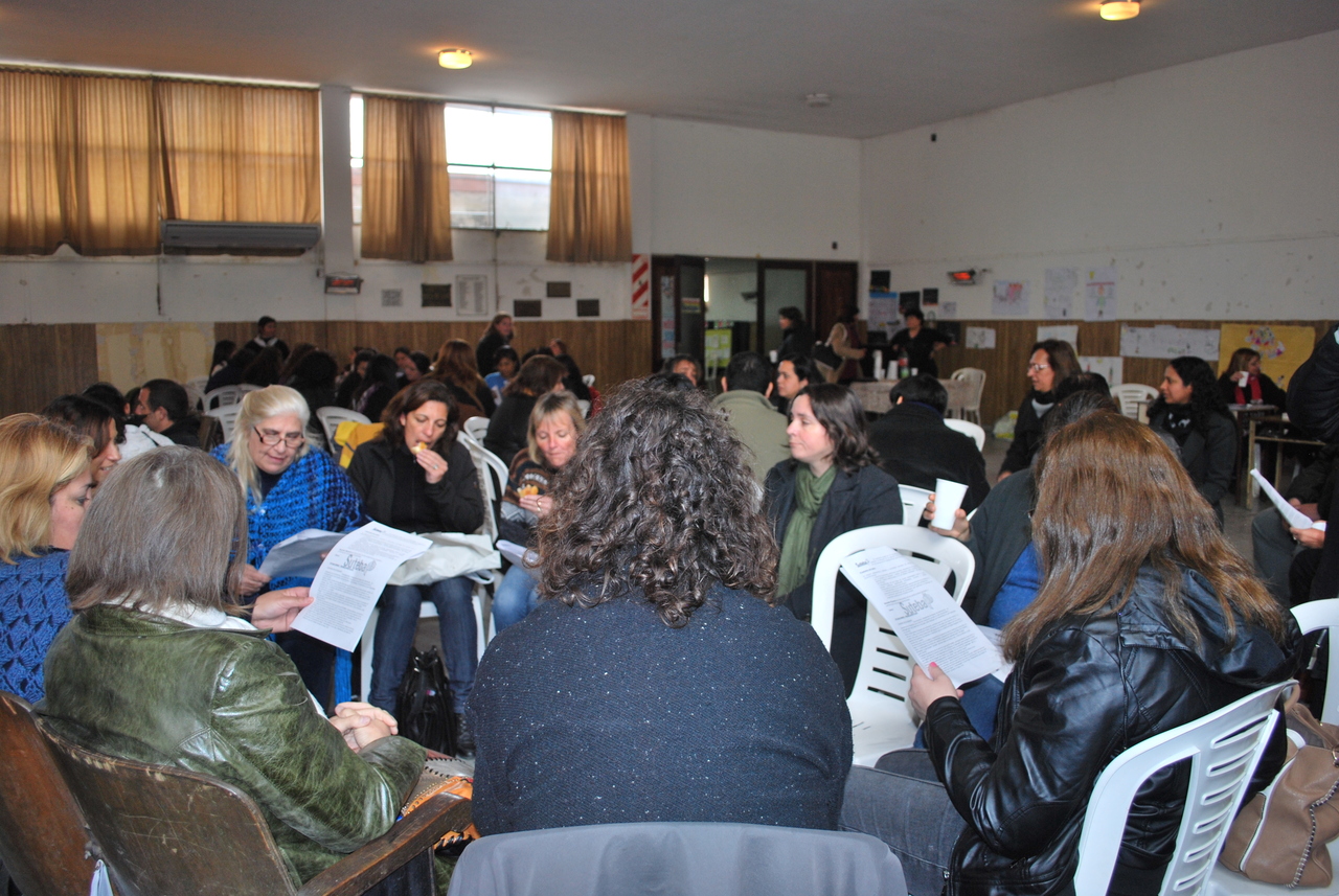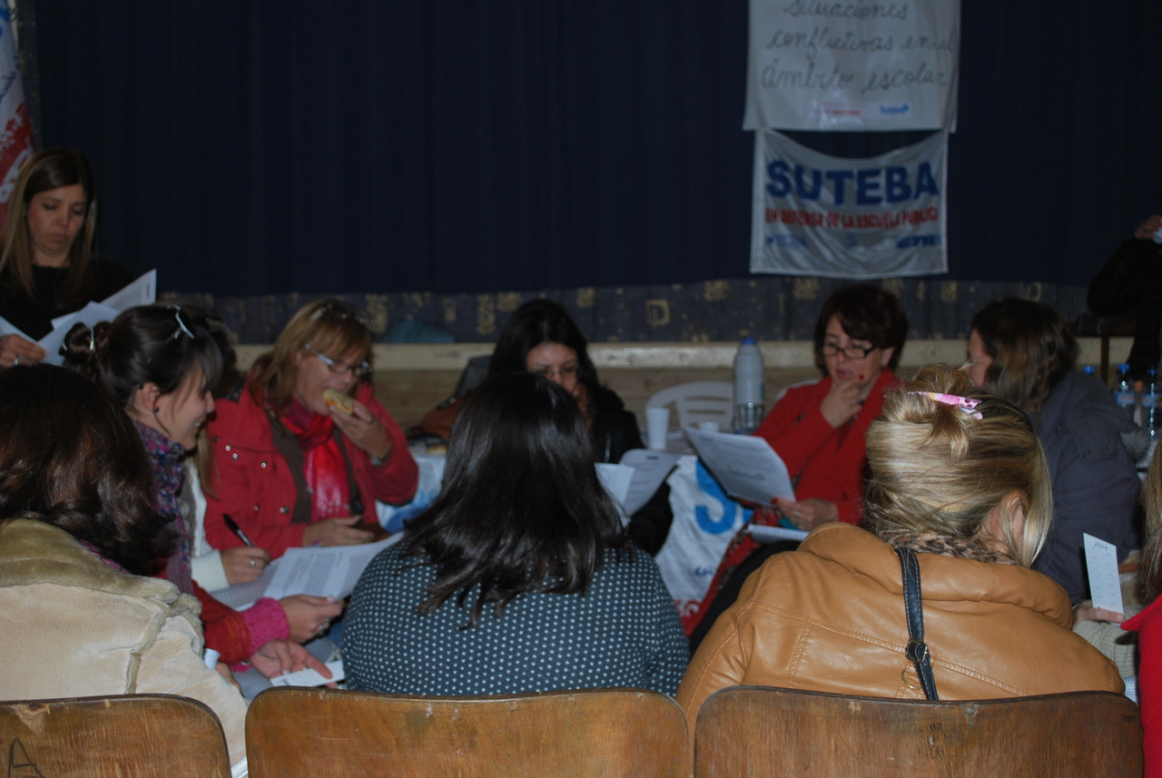 En horas de la mañana se trabajó sobre el marco teórico y por la tarde se realizó un taller para analizar las distintas situaciones que afectan a niños, niñas y adolescentes, enriquecido por el análisis de la Comunicación Conjunta 1/2012. De lo trabajado en comisiones, la puesta en común arrojó que la mejor herramienta para afrontar estas situaciones complejas es la circulación de la palabra, el trabajo colectivo y la concientización de todos los actores institucionales como parte de ese colectivo para construir una mejor educación y mejor escuela, participativa y democrática.