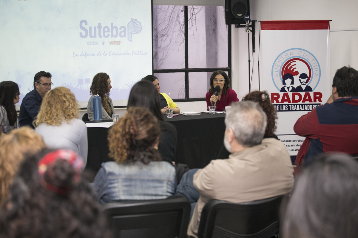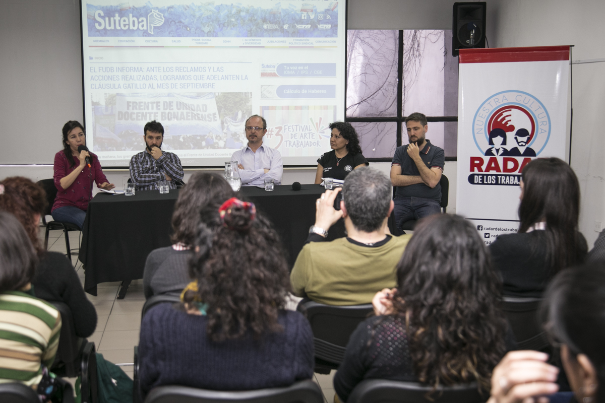 La primera, que se desarrolló a partir de las 10 de la mañana, se denominó "Cultura y medios de comunicación" y contó con una Mesa conformada por: Andrea Malimacci de la UMET; Javier "El Profe" Romero, Periodista y Analista de medios; Lucrecia Cardoso y Karina Micheletto, de Página 12 y Radio Del Plata; y la moderación de María Elisa Semino, Secretaria de Comunicaciones del SUTEBA.