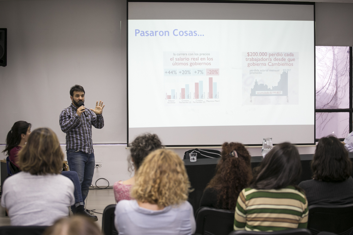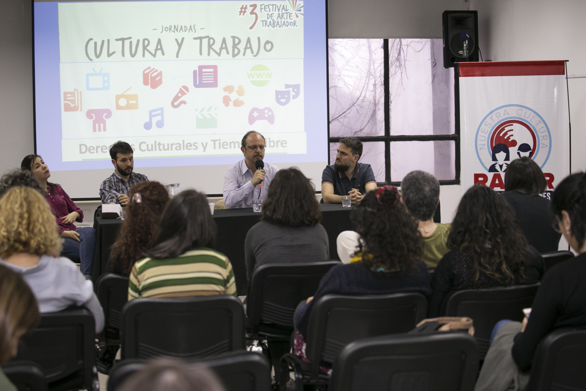 La Jornada "Derechos culturales y tiempo libre" se realizó por la tarde y contó con la presencia de: Alejandro Grimson, Antropólogo social; Federico Escribal de la UNA; Gerardo Sánchez del Grupo Barolo; Silvana Ávila de ATE Capital; y quien moderó el encuentro, Belén Sotelo, de CTA CABA y FEDUBA.