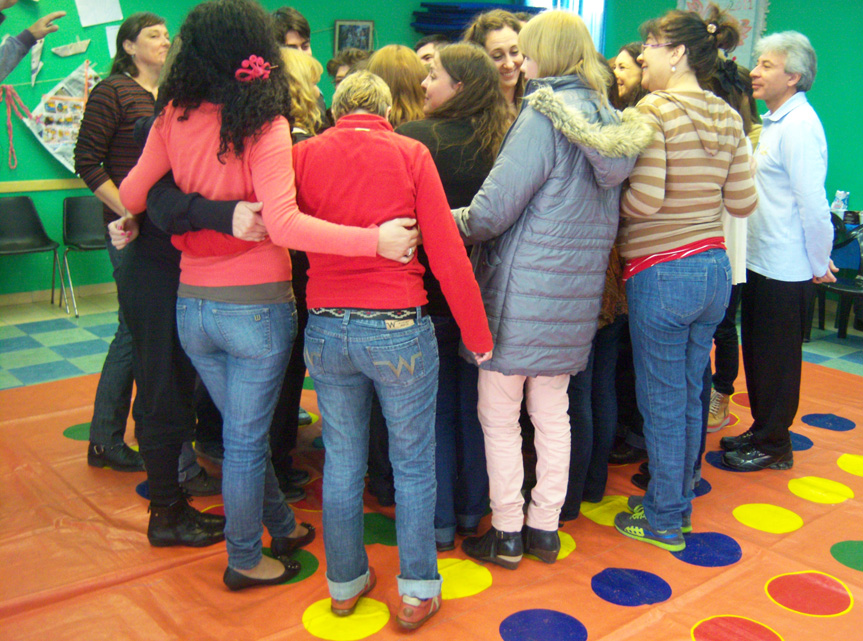 Cada encuentro regional convocó a los equipos de salud de los centros correspondientes a esa zona para la preparación de los rincones de juego que se instalarán en las salas de espera en el marco de la Campaña por la Desmedicalización de la Vida Cotidiana.