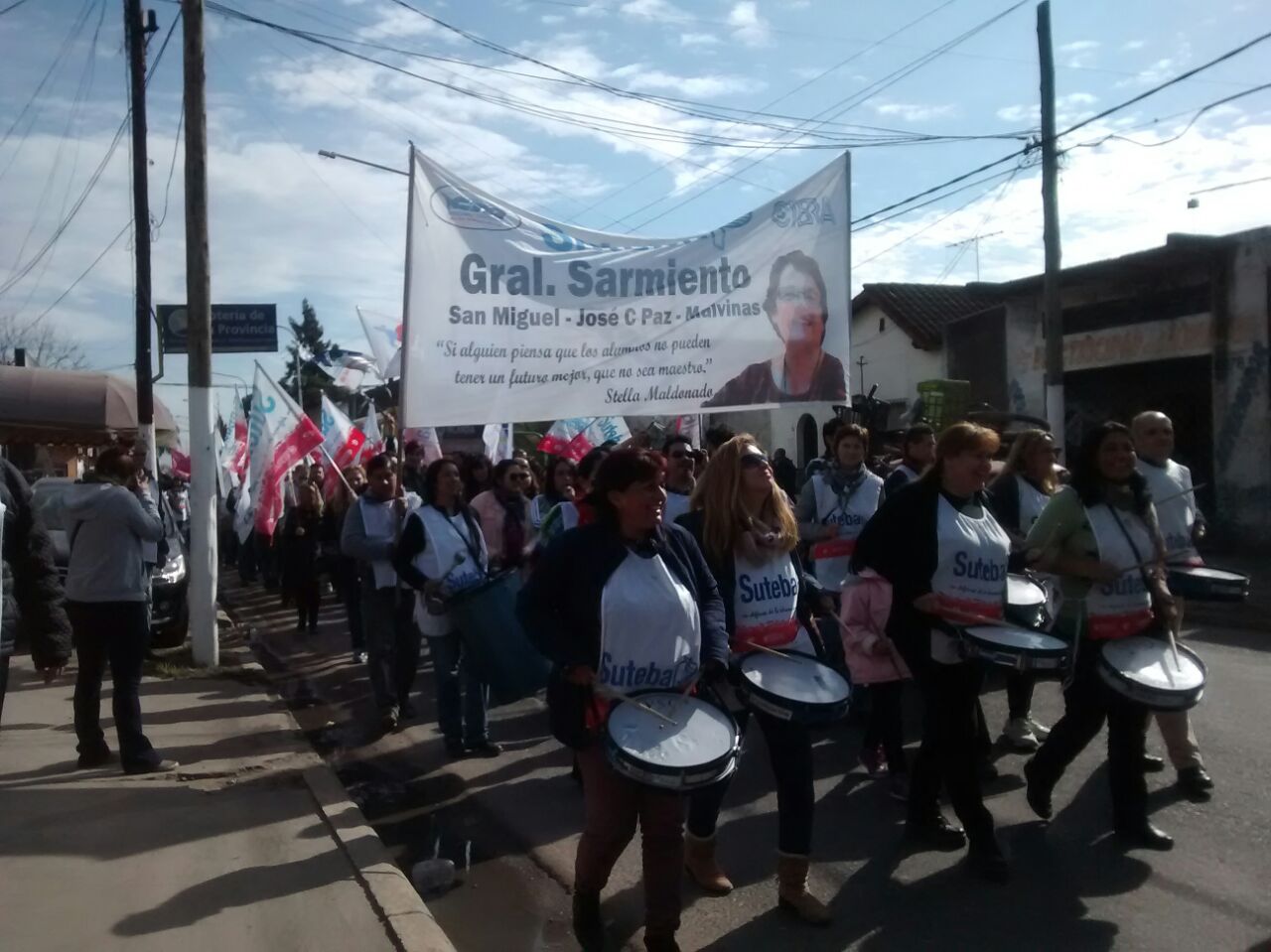 La Secretaria Gremial de SUTEBA, María Laura Torre, declaró en el acto: "Este paro de 24 hs. tiene lugar porque esta situación ya no se puede sostener. Hace más de tres meses que los docentes de José C Paz acuden a La Plata y presentan todo tipo de reclamos. Si no se cobra es por la decisión política del Gobierno de la Provincia de Buenos Aires en conjunto con el Consejo Escolar de José C Paz, que no se hacen cargo de su responsabilidad".