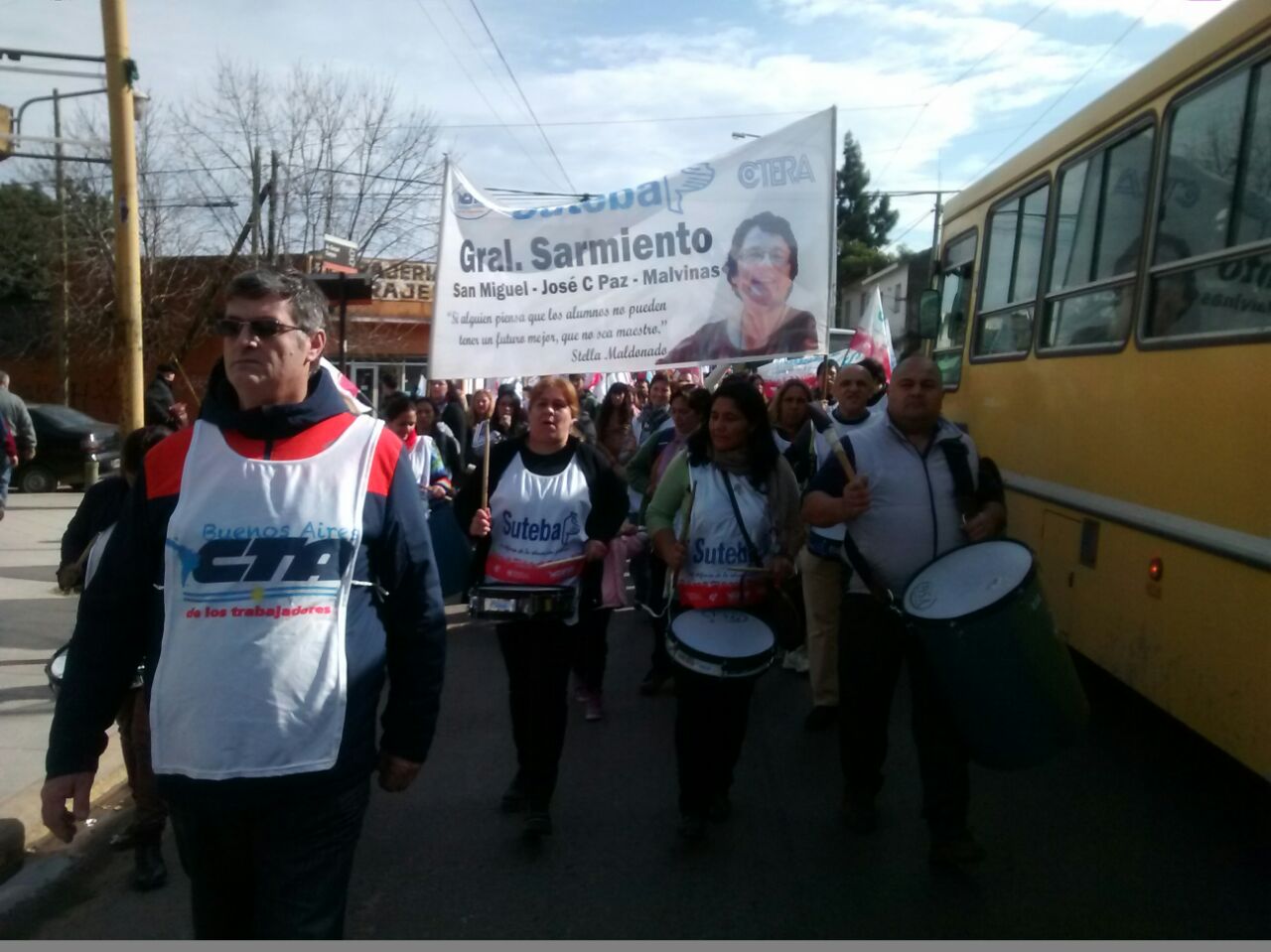En el día de hoy, el SUTEBA José C. Paz realizó un paro, con un acatamiento del 95%, y se concentró frente a la Jefatura Distrital para reclamar por sueldos adeudados de más de 500 docentes.