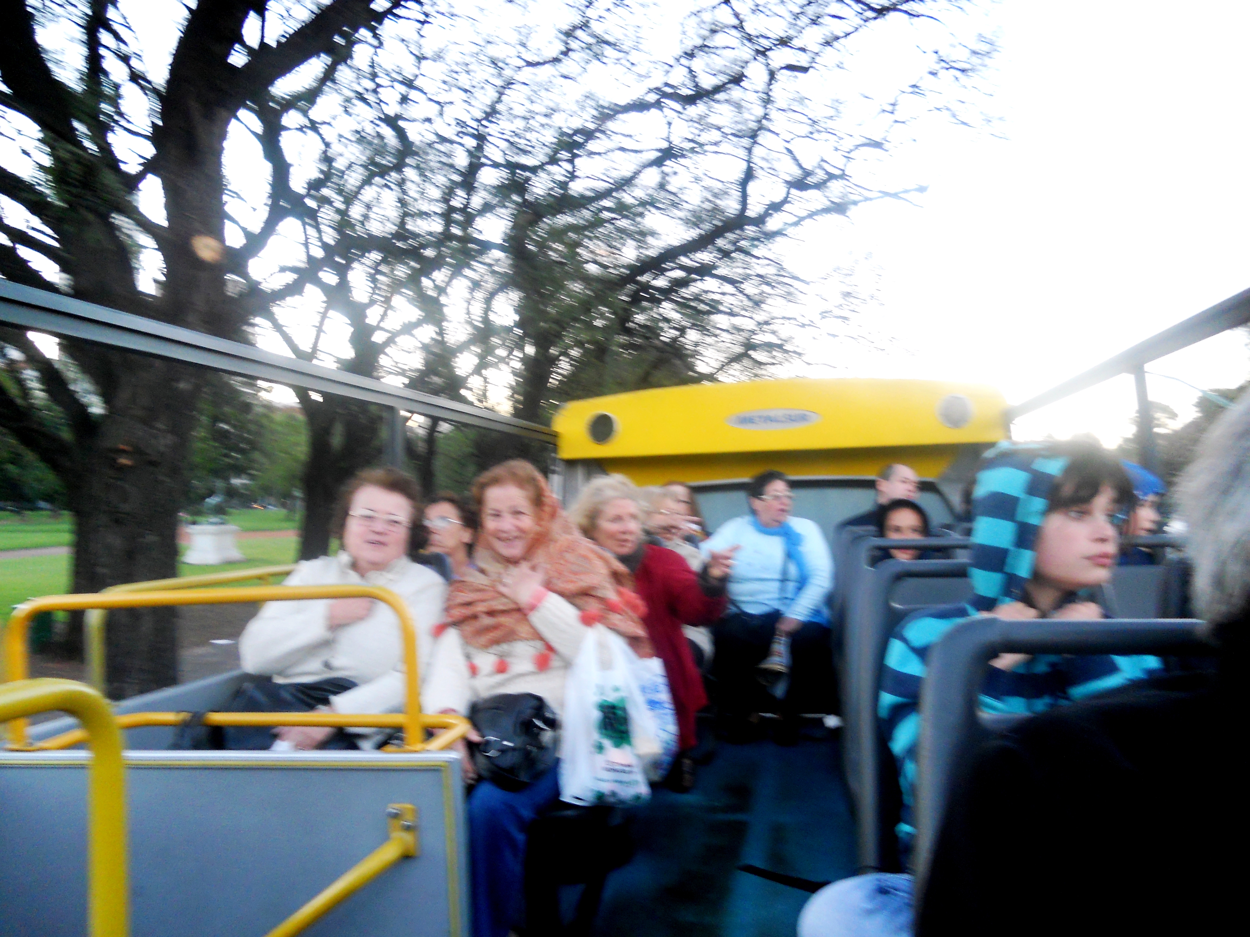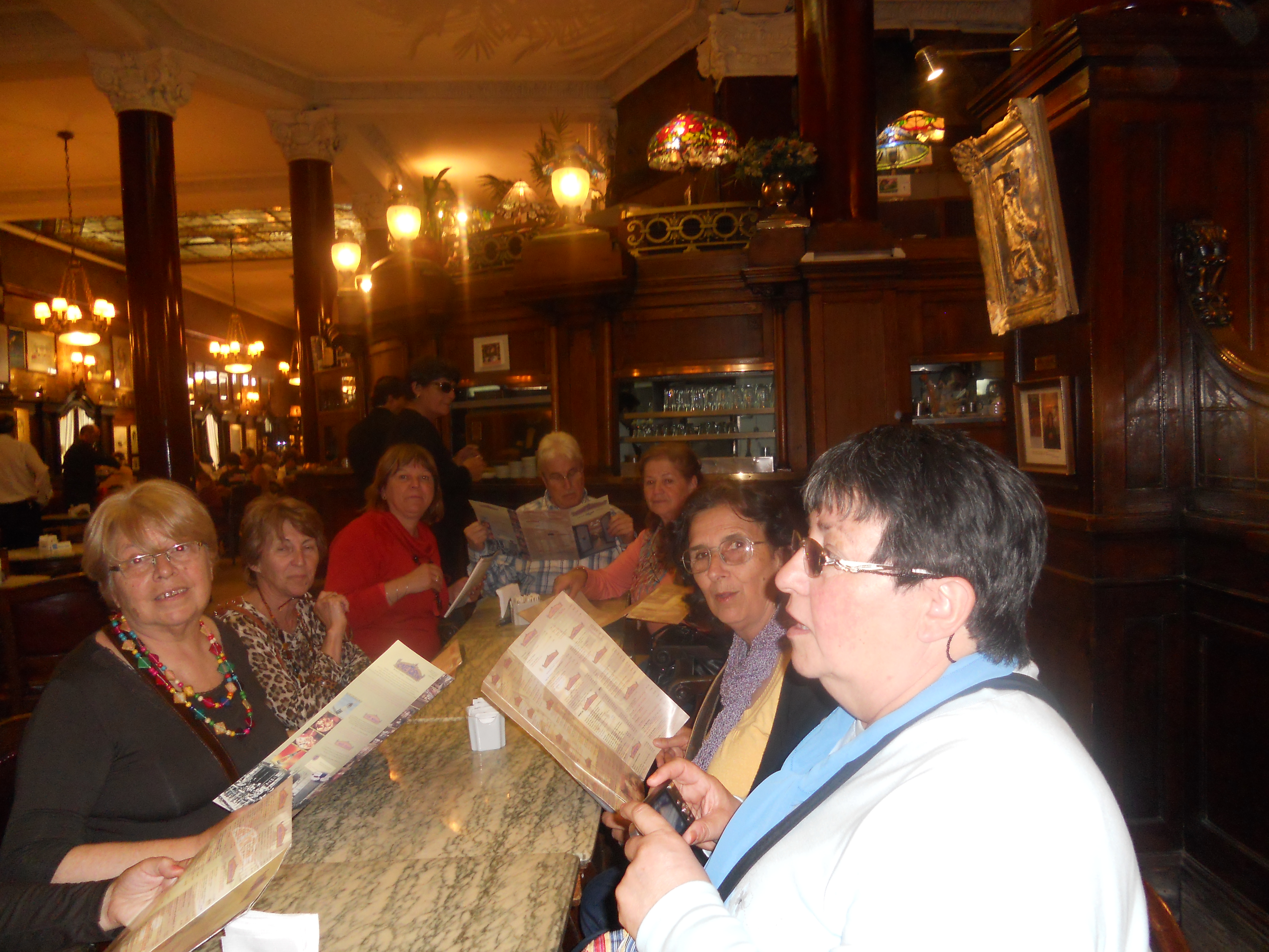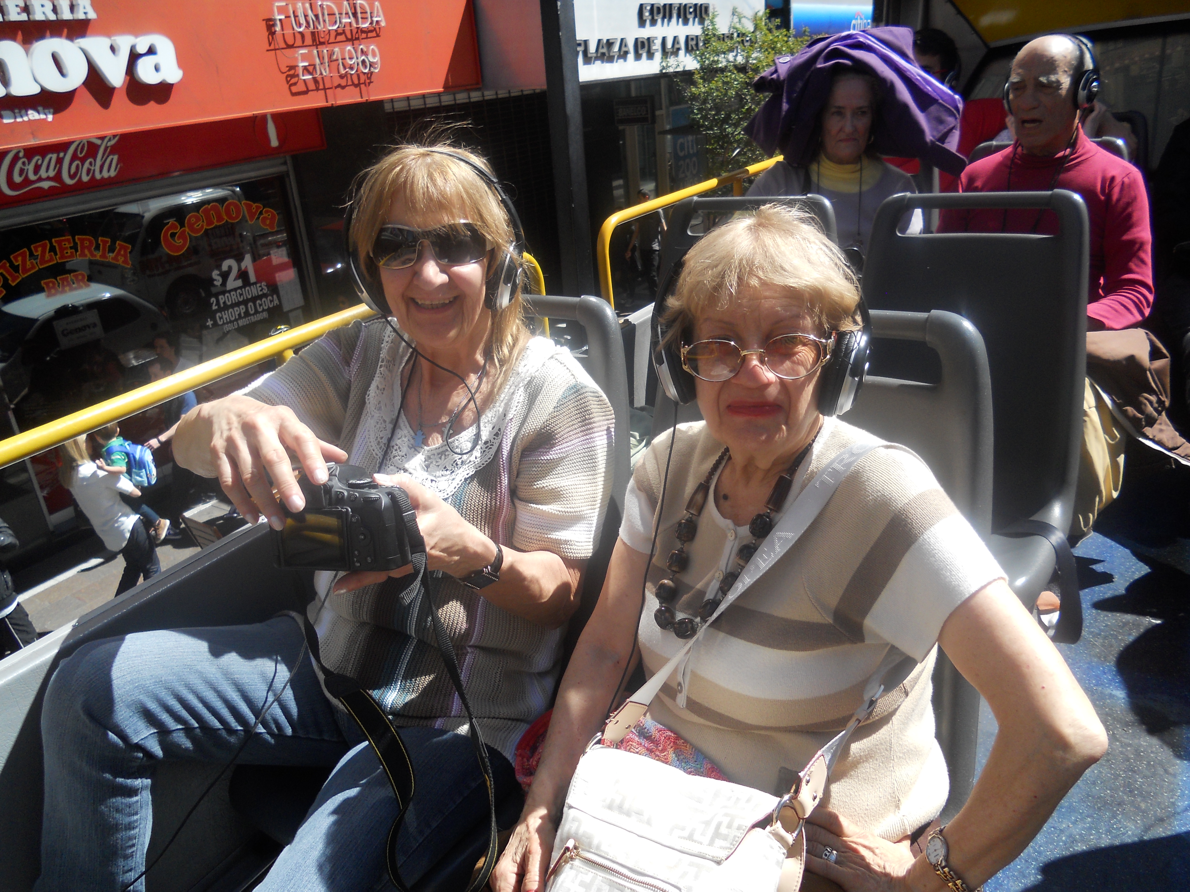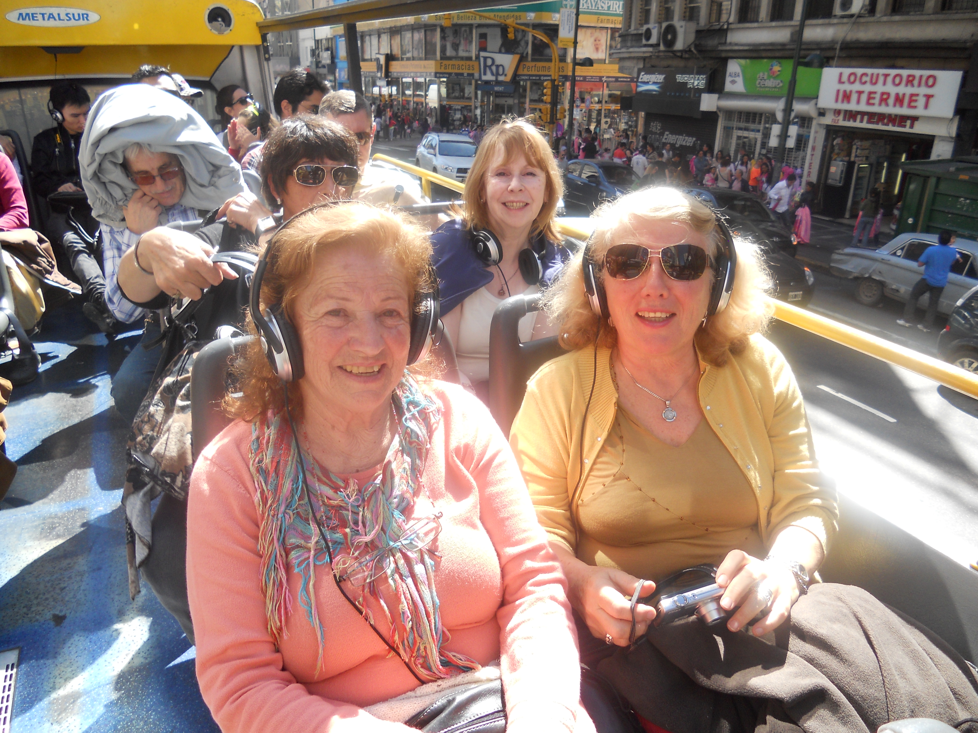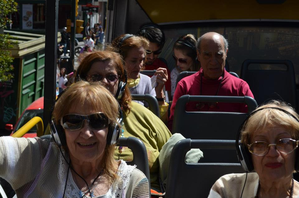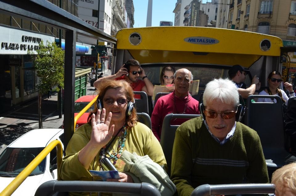El recorrido fue por distintos lugares turísticos de la Ciudad, tales como La Boca, la Av. Libertador, el Planetario, el Zoológico, el Museo Malba, el Barrio Chino, la peatonal Florida, y muchos más. Este Bus te permite bajarte en 25 estaciones, y nosotros decidimos dividirnos en dos grupos. Un grupo caminó por la calle Florida hasta las Galerías Pacifico y el Convento cercano; y otro grupo fue al café Tortoni en la Av. de Mayo, donde vimos el colorido desfile de la colectividad boliviana”.