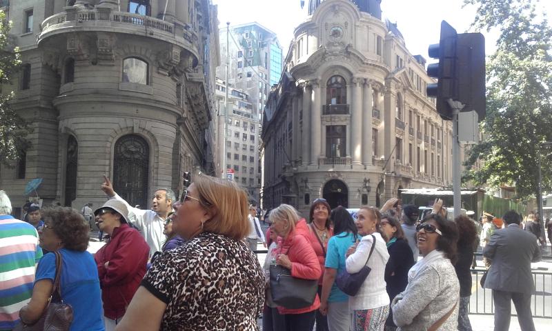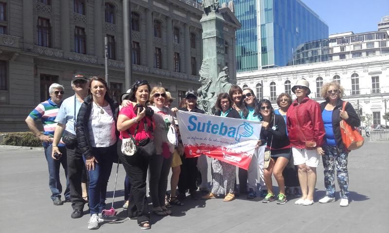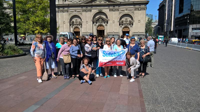 El City Tour lxs llevó por los lugares más importantes de la ciudad (Plaza de Armas, Palacio de la Moneda, Barrio Concha y Toro y Fábrica de Lapislázuli) finalizando con un almuerzo en el Mercado Central. Después, lxs compañerxs pudieron gozar de 3 horas para realizar un tour de compras.