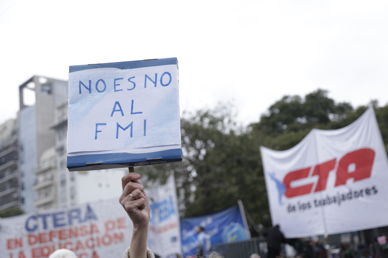 "La patria no se rinde" y "NO al FMI" fueron las consignas de la manifestación que se desarrolló para rechazar el acuerdo que firmó el Gobierno Nacional con el organismo de crédito internacional.