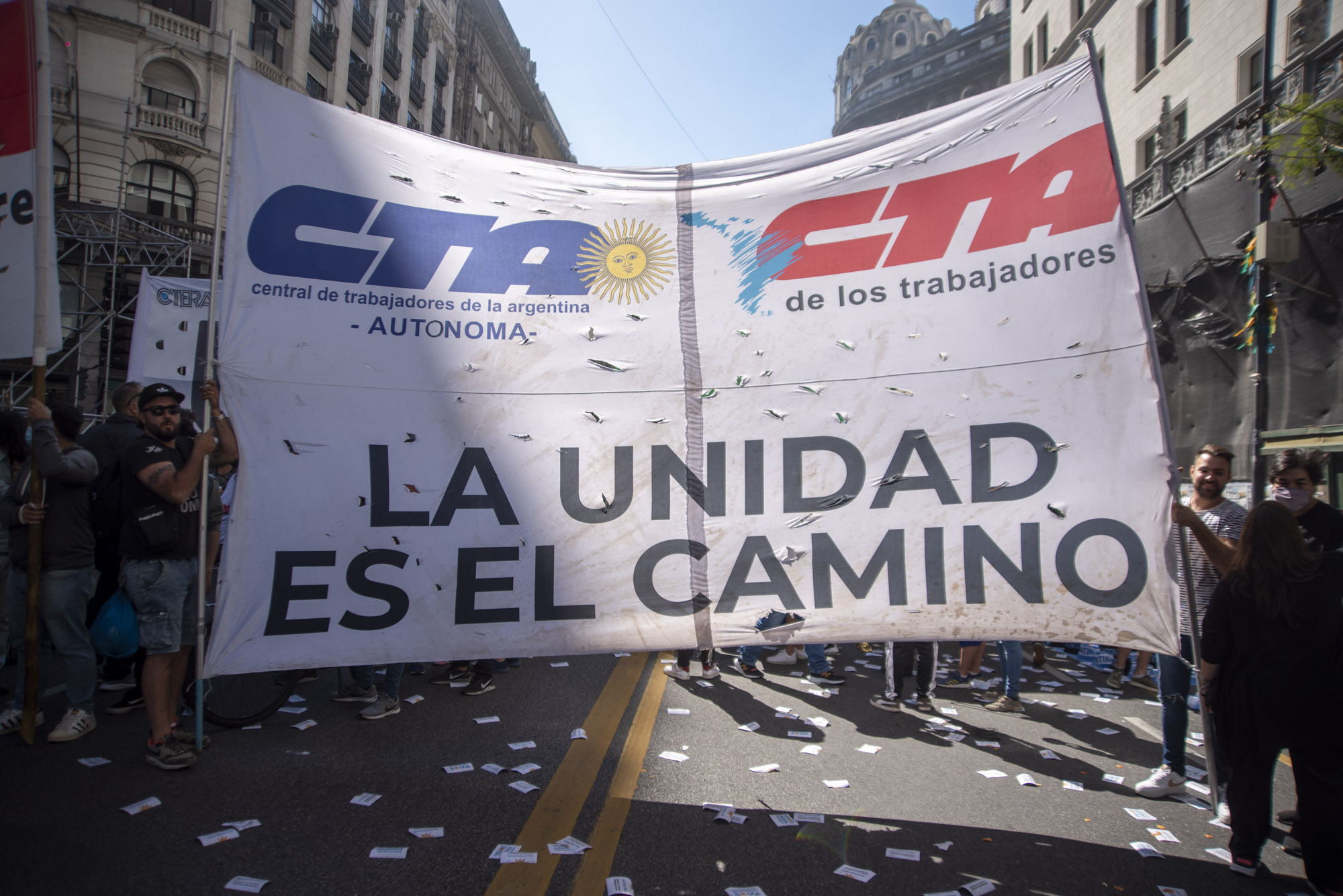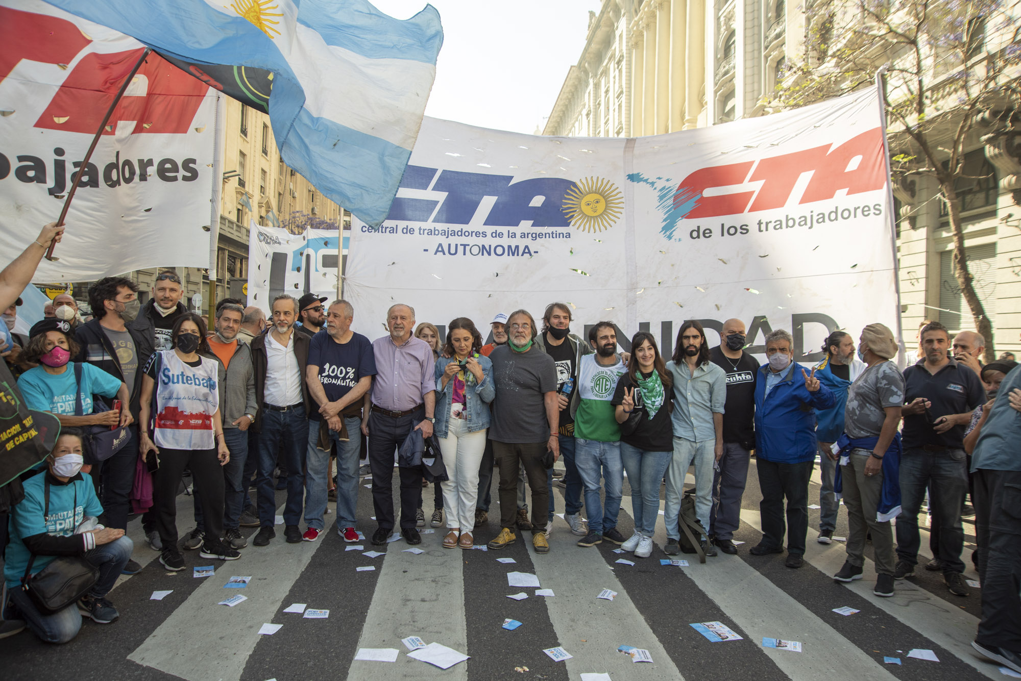 El masivo acto, que tuvo como único orador al Presidente Alberto Fernández, fue una verdadera demostración de unidad del campo popular, ya que congregó a Trabajadorxs representadxs por las tres centrales sindicales (CTA de lxs Trabajadorxs, CTA Autónoma y CGT) y a todos los sectores internos del Frente de Todos.