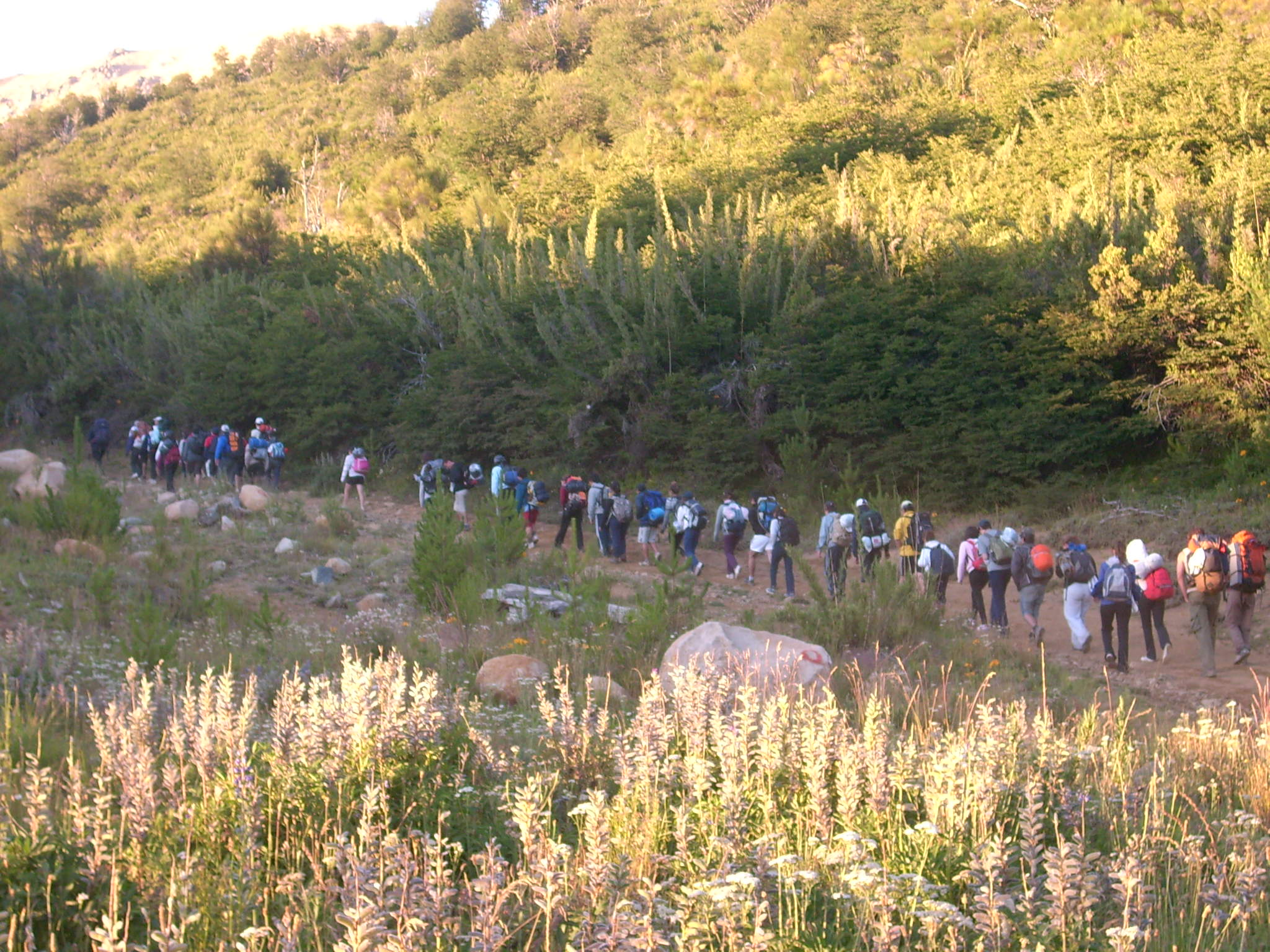 Lograron 3 ascensos en escala de dificultad; el primero y más fácil, pero acompañado por un cielo inundado de estrellas, fue el treinteno nocturno al Cerro Goyen. El segundo fue el Cerro López, más complejo, pero la belleza de su paisaje en la cima nos hizo valorar el esfuerzo. El tercero y la culminación del viaje fue el Cerro Catedral, acompañado en la cima por su magnifica laguna, sus agujas y algún que otro playón de nieve que encontramos y del que los pibes disfrutaron. Haciendo noche en su refugio, el Frey, nos dimos cuenta que todo valió la pena; disfrutar de semejante cielo en la oscuridad de la cumbre y también de tal hermoso grupo que el empuje por el logro soldó y realmente fue irrompible; durante las 4 horas de lucha, surgió de ellos las mejores virtudes que el hombre puede compartir, altruismo, solidaridad y una pizca de lágrimas que hasta el más duro no pudo evitar de soltar.