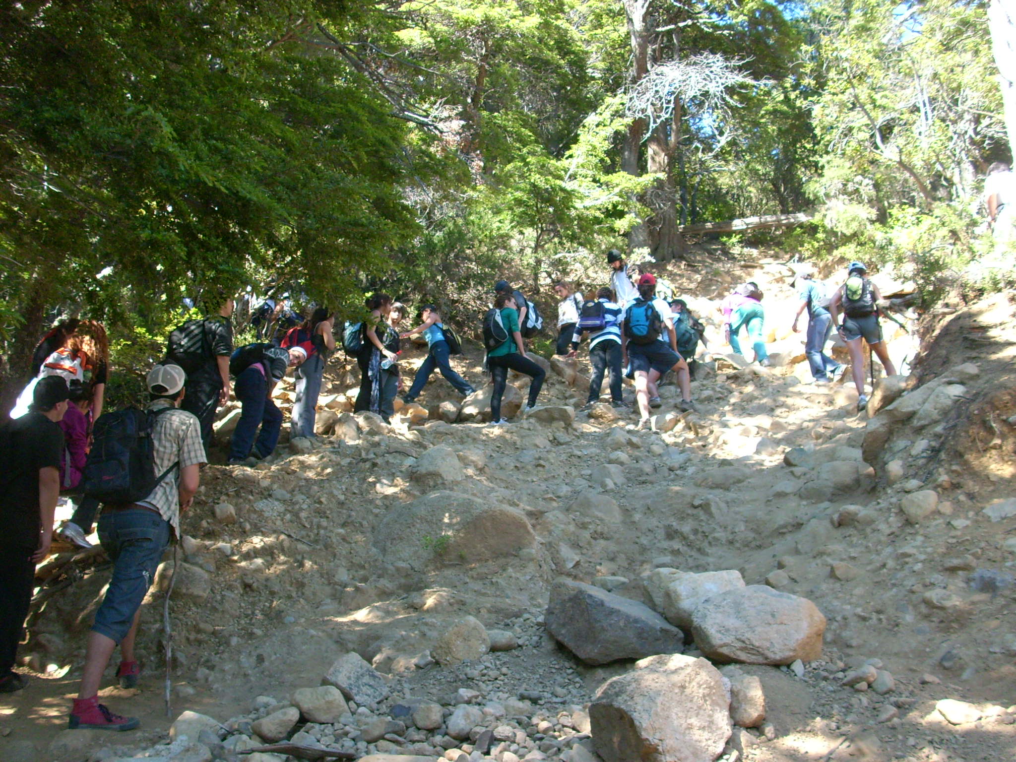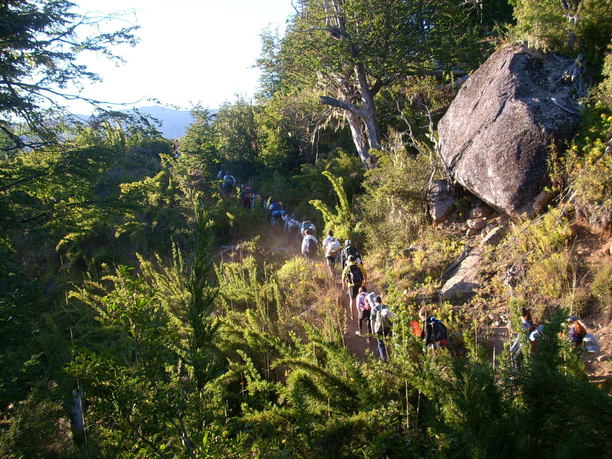 Lograron 3 ascensos en escala de dificultad; el primero y más fácil, pero acompañado por un cielo inundado de estrellas, fue el treinteno nocturno al Cerro Goyen. El segundo fue el Cerro López, más complejo, pero la belleza de su paisaje en la cima nos hizo valorar el esfuerzo. El tercero y la culminación del viaje fue el Cerro Catedral, acompañado en la cima por su magnifica laguna, sus agujas y algún que otro playón de nieve que encontramos y del que los pibes disfrutaron. Haciendo noche en su refugio, el Frey, nos dimos cuenta que todo valió la pena; disfrutar de semejante cielo en la oscuridad de la cumbre y también de tal hermoso grupo que el empuje por el logro soldó y realmente fue irrompible; durante las 4 horas de lucha, surgió de ellos las mejores virtudes que el hombre puede compartir, altruismo, solidaridad y una pizca de lágrimas que hasta el más duro no pudo evitar de soltar.