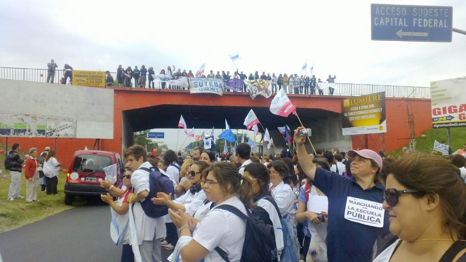 14/03/2013 En su segunda jornada, la "caminata y caravana por la Escuela Pública" llegó a la Ciudad de La Plata luego de pernoctar en Florencio Varela.