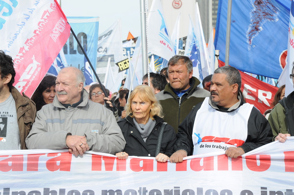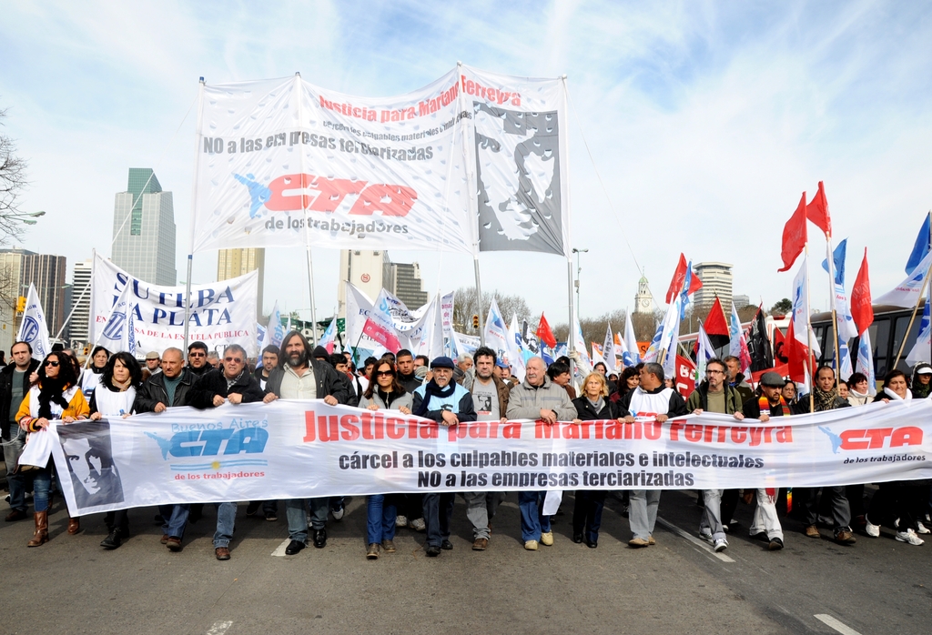 Más de mil compañeros marcharon desde la Plaza Canadá hasta la puerta del tribunal. A la cabeza de la columna, sosteniendo una bandera que rezaba"Justicia para Mariano Ferreyra, cárcel a los culpables materiales e intelectuales, no a las empresas tercerizadas" iban los dirigentes de la CTA: Pedro Wasiejko (Sec. Gral. SUTNA), Secretario Adjunto CTA Nacional; Marcelo Frondizi (ATE), Secretario Adjunto CTA Nacional; Roberto Baradel (Sec. Gral. SUTEBA), Secretario General CTA Buenos Aires; Daniel Perez Guillen (AJB), Secretario Adjunto CTA Buenos Aires; Fabian Alessandrini (ATE), Secretario Adjunto CTA Buenos Aires; Beto Pianelli, (SUBTE) ; Eduardo López, Secretario General UTE; Victorio Paulón, Secretario Relaciones Internacionales CTA Nacional; Hernán Letcher, (Segundo Centenario); Hernán Torres Guerrero (Segundo Centenario); Chapu Urrelli (MTL Nacional); Paciano Ocampo (Germán Abdala); Jesús Zelarayan (Martin Fierro); Diego Suarez (Agustín Tosco); Benito Espíndola (Rep. Pueblos Originarios); Oscar Retuerto (Marcha Grande Oeste Provincia de Buenos Aires); y Mario Miceli (MTL Buenos Aires).