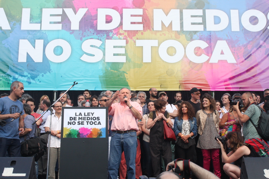 En una Plaza de los dos Congresos multitudinaria, las compañeras y compañeros de CTA, junto a organizaciones sociales, políticas, sindicales y público en general, se manifestaron en defensa de la Ley de Servicios de Comunicación Audiovisual.