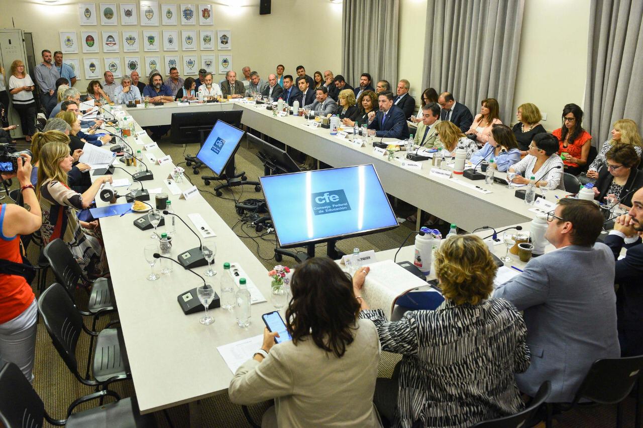 La reunión estuvo presidida por el Ministro de Educación, Nicolás Trotta, la Viceministra, Adriana Puiggrós, e integrantes del gabinete educativo.