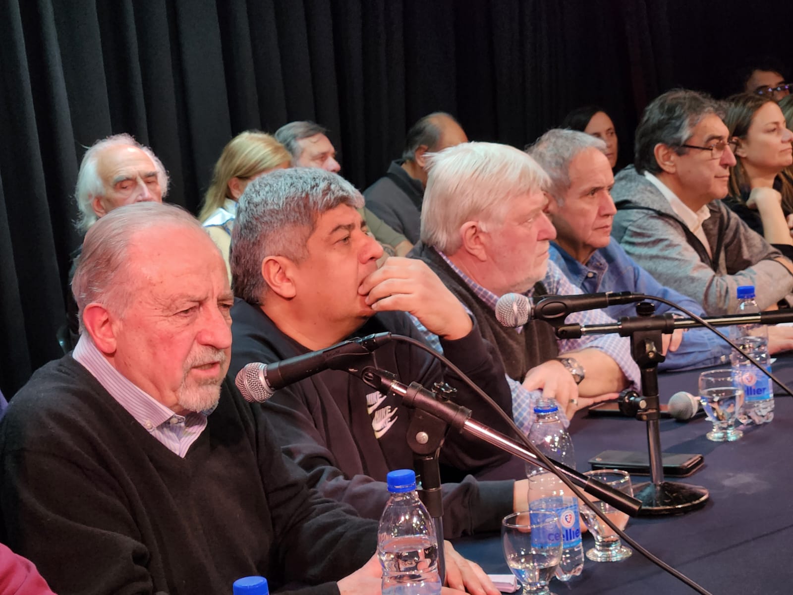 Durante la conferencia de prensa realizada en la sede de APSEE, también se refirieron a la medida conjunta el Secretario General de la Asociación del Personal Superior de Energía Eléctrica (APSEE), Carlos Minucci; el Secretario General de la CTA Autónoma, Hugo Godoy; el Secretario General de la Asociación Bancaria (Corriente Federal de Trabajadores - CGT) y Diputado Nacional, Sergio Palazzo; y el Secretario General Adjunto de la Federación de Camioneros (Frente Sindical por el Modelo Nacional - CGT) y triunviro de la CGT, Pablo Moyano.
