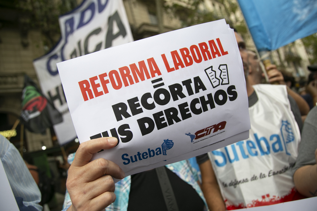 Roberto Baradel, Secretario General del SUTEBA: "Nos vamos a seguir movilizando, vamos a seguir uniendo fuerzas con todxs lxs Trabajadorxs; no podemos permitir que pase esta reforma. Y si la llegaran a votar, vamos a seguir luchando para darla por tierra, como hicimos con otras reformas. Lxs Trabajadorxs no estamos dispuestxs a volver a principios del siglo pasado, tenemos derechos y los vamos a hacer valer".
