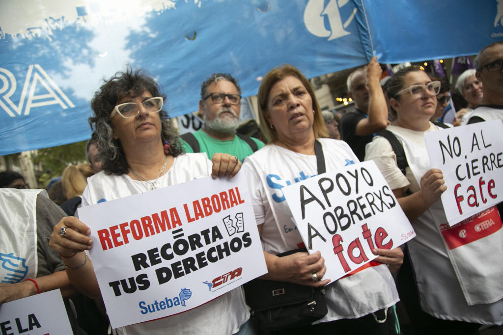 El SUTEBA adhirió hoy al Paro Nacional y se movilizó al Congreso de la Nación, junto a miles de Trabajadorxs, en rechazo a la reforma laboral y al ajuste del Gobierno Nacional.