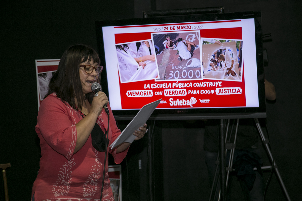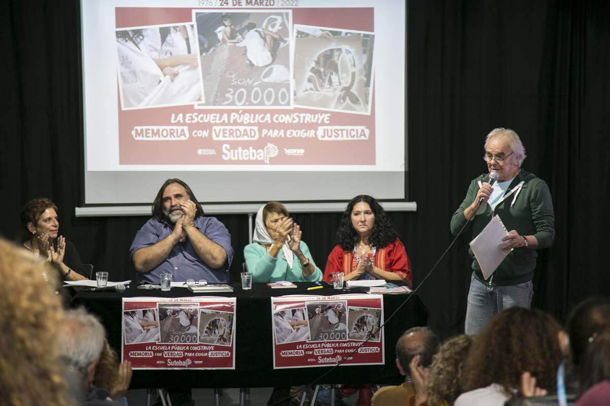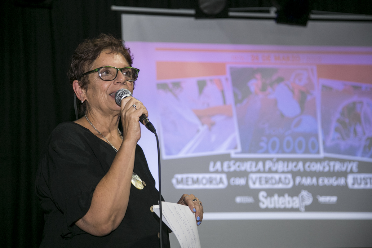 Por último, Georgina Gabucci se refirió al Registro de Compañerxs Docentes Detenidxs Desaparecidxs en la provincia de Buenos Aires, que recopila las historias de vida de 410 compañeros y compañeras, y al que en pocos días se podrá acceder desde la página web del SUTEBA.