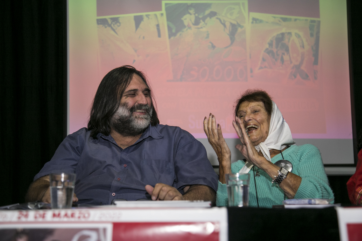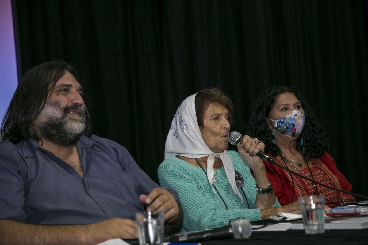 Taty protagonizó algunos de los momentos más emotivos del encuentro. Ovacionada por lxs asistentes cuando llegó y cuando se fue, sus palabras fueron interrumpidas varias veces con aplausos y con el tradicional "¡Madres de la Plaza, el pueblo las abraza!"