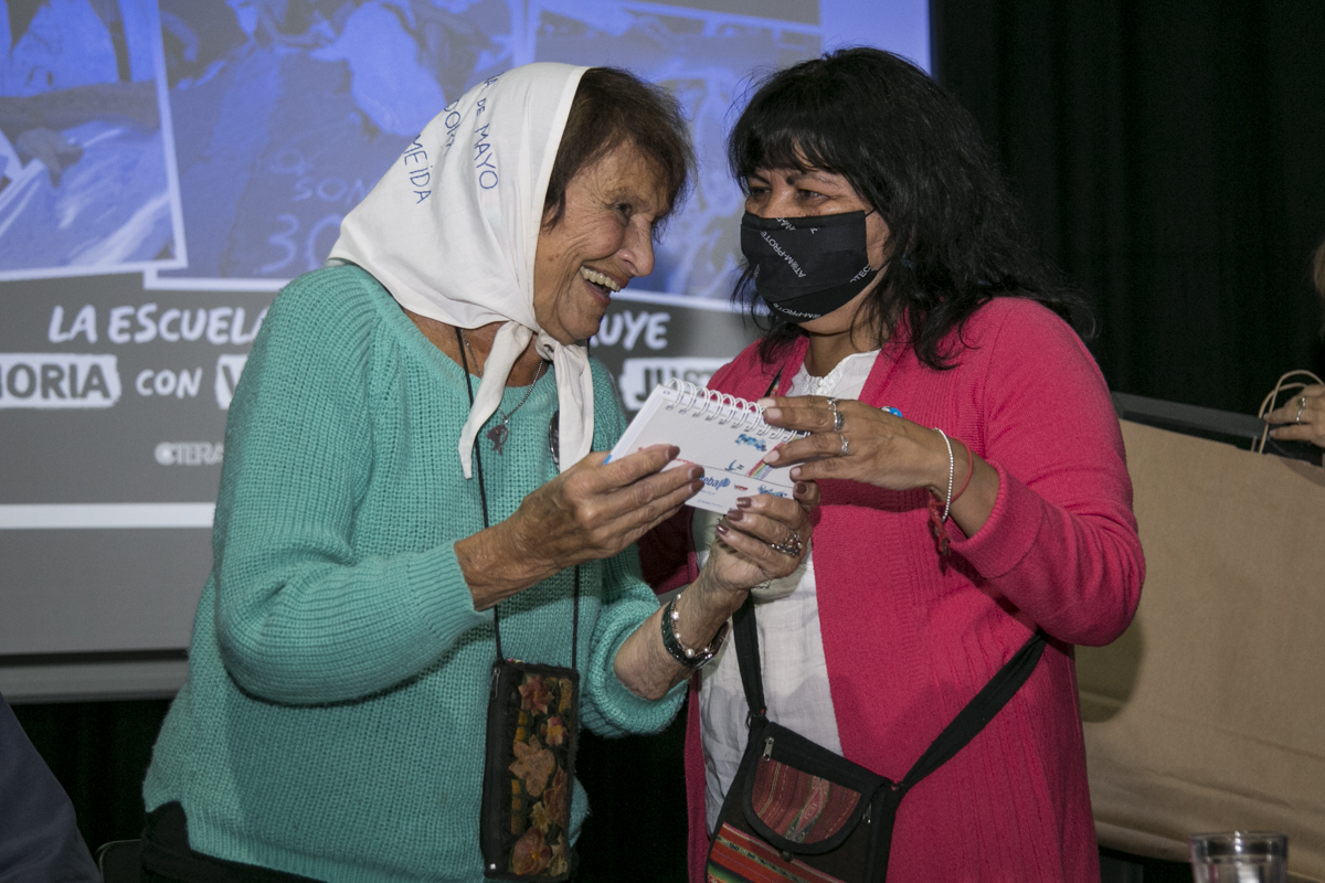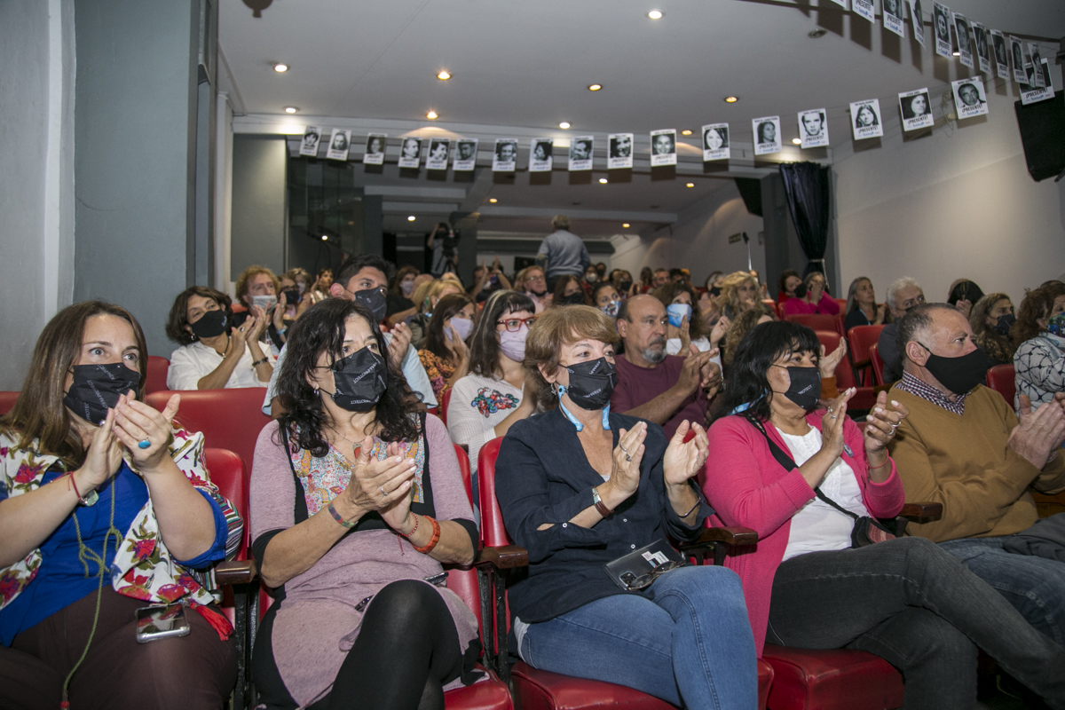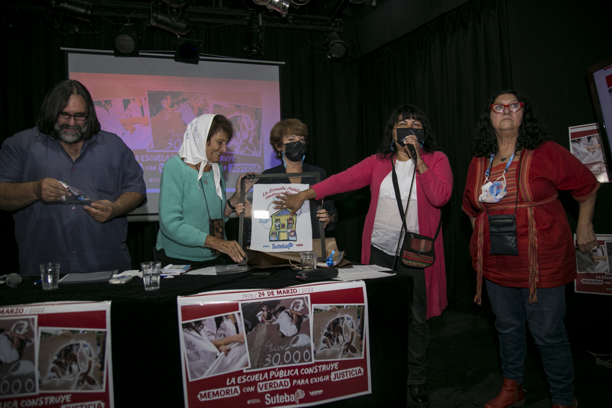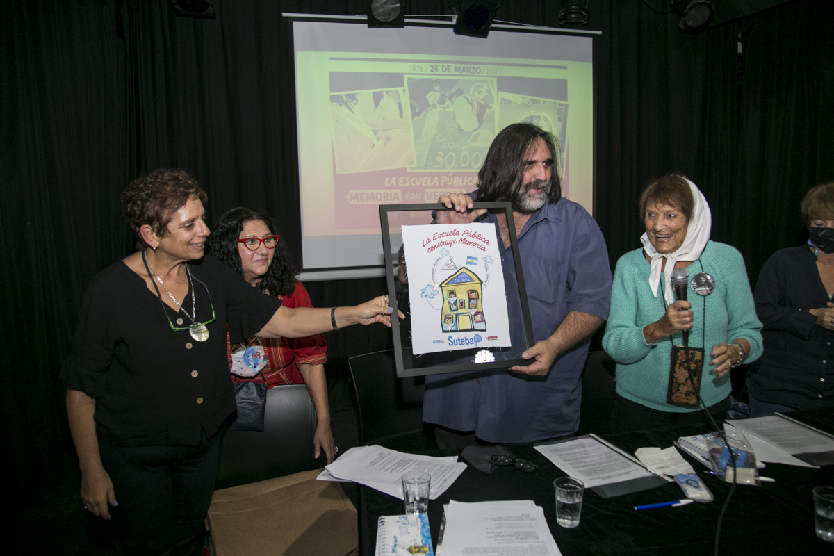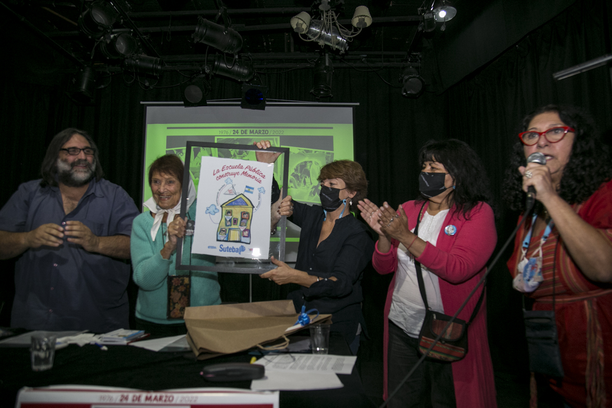 En el emotivo acto, desarrollado en la tarde de ayer en el Teatro La Máscara, y transmitido en vivo por la plataforma Docentes Conectadxs, estuvieron presentes Taty Almeida, Madre de Plaza de Mayo; Roberto Baradel, Secretario General del SUTEBA; María Laura Torre y Silvia Almazán, Secretarias Generales Adjuntas; Patricia Romero Díaz y Mónica Grandoli, Secretaria y Subsecretaria de DDHH, respectivamente.