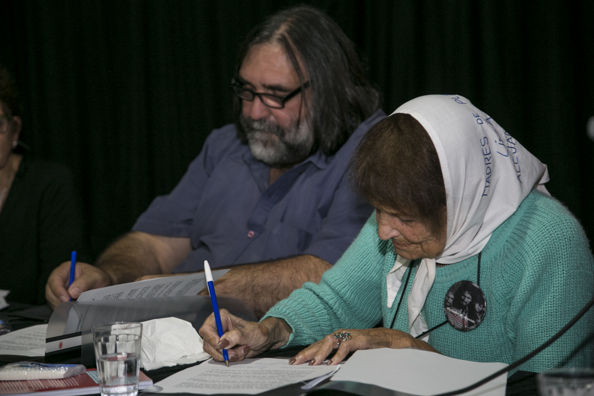 A continuación, Taty Almeida y Roberto Baradel firmaron el convenio entre el SUTEBA y Madres de Plaza de Mayo Línea Fundadora, que contempla la colaboración mutua para llevar adelante distintas actividades, como capacitaciones para Docentes e investigaciones, vinculadas con la Memoria, la Verdad y la Justicia.