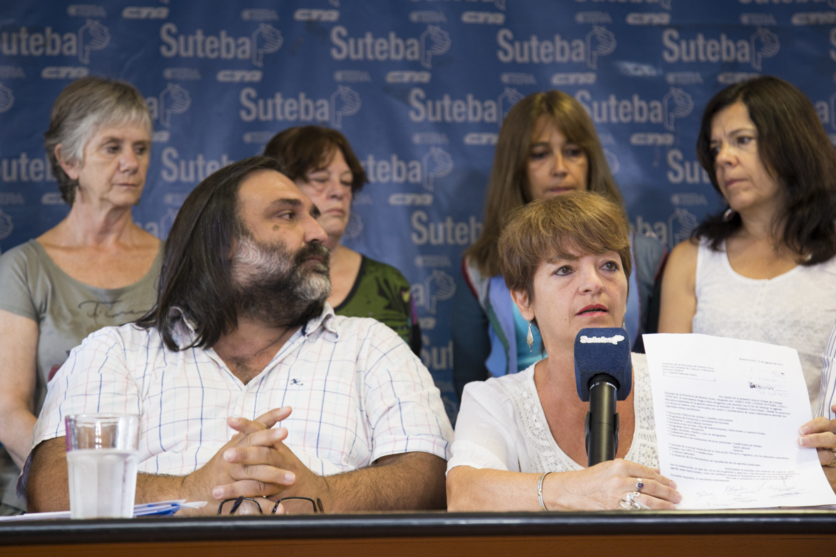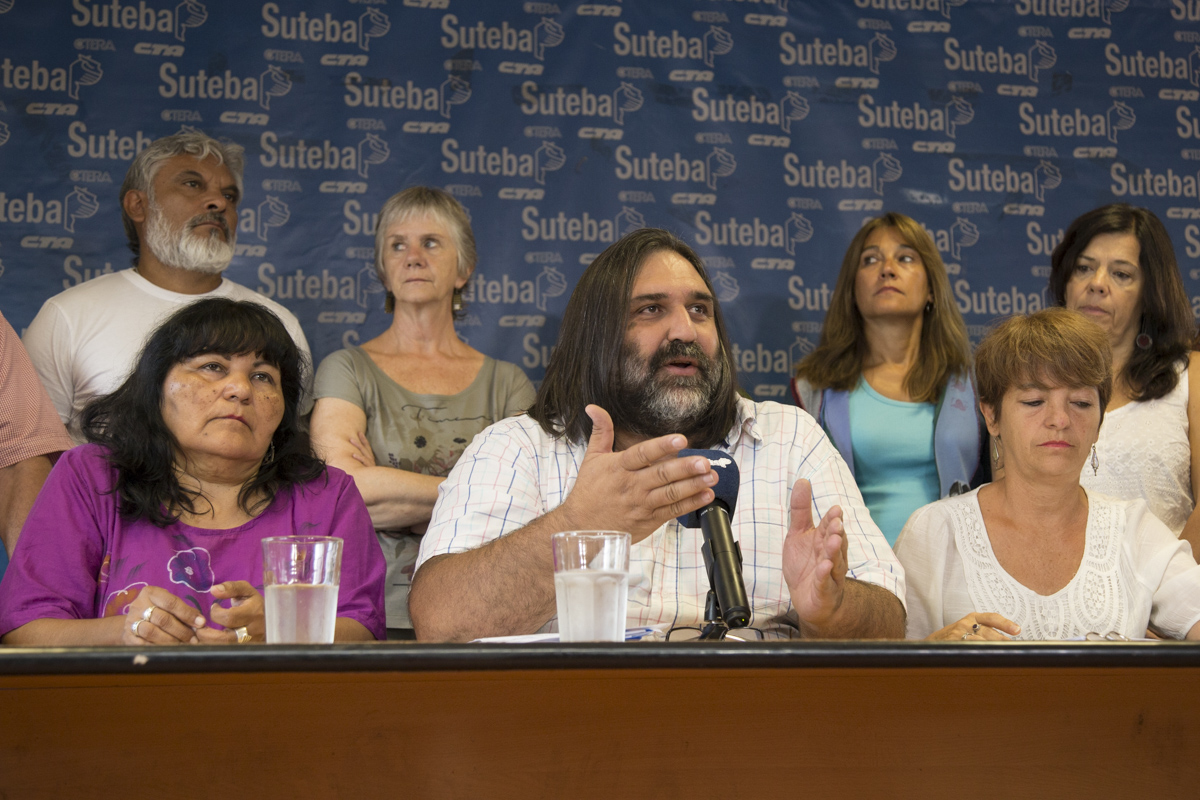 En Conferencia de Prensa, el Secretario General de SUTEBA, Roberto Baradel, expresó el reclamo de todxs lxs Trabajadorxs de la Educación y le exigió, nuevamente, a la Gobernadora María Eugenia Vidal una convocatoria urgente para discutir Paritarias.