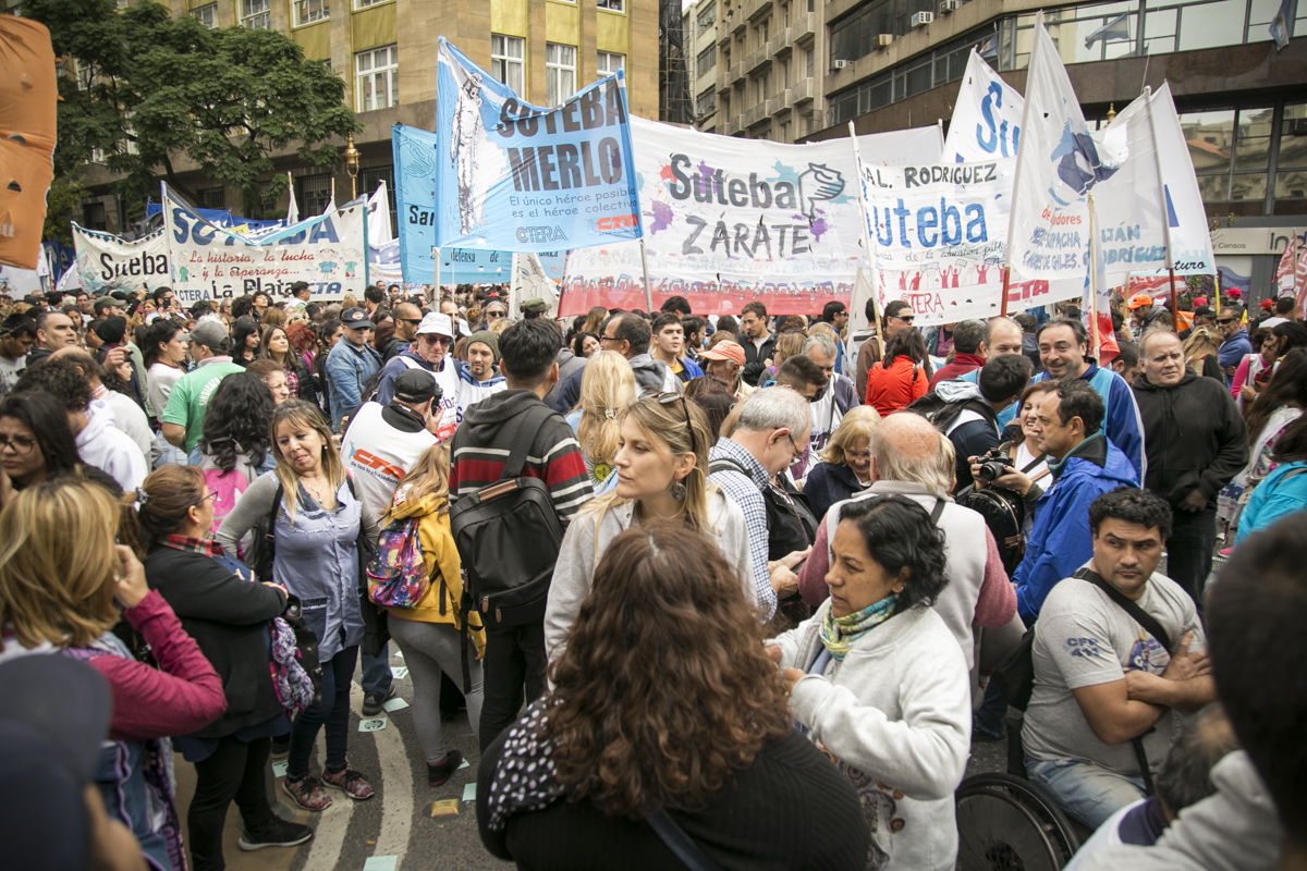 María Laura Torre, Secretaria General Adjunta del SUTEBA, sostuvo: "Participamos de esta inmensa marcha para decirle basta a las políticas de ajuste que implementan Macri y Vidal. Lxs Docentes y lxs Trabajadorxs de todo el país estamos en la calle para decir que no se aguanta más esta situación, hay gente que no tiene trabajo ni un plato de comida en su mesa".
