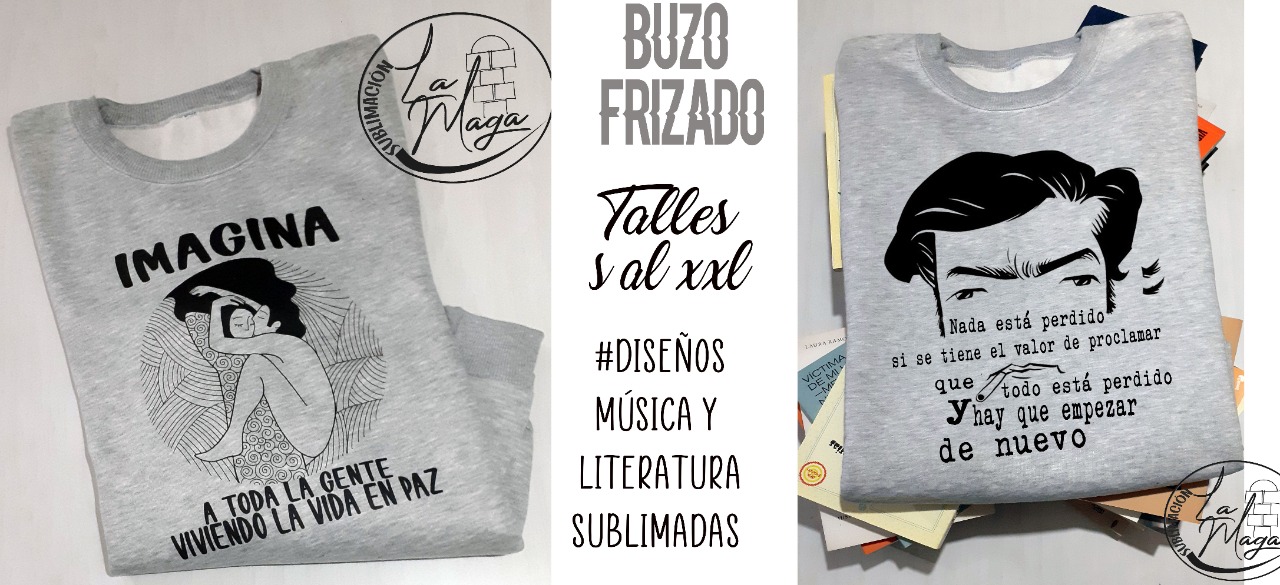 La Maga realiza sublimaciones en remeras, buzos, tazas y vasos con frases e imágenes para regalar y regalarte: Simone de Beauvoir, Alejandra Pizarnik, Rosa de Luxemburgo, Charly García, el flaco Spinetta y más.