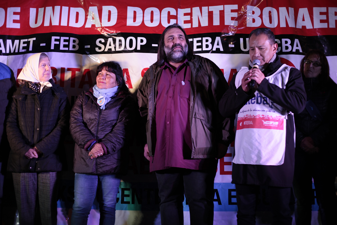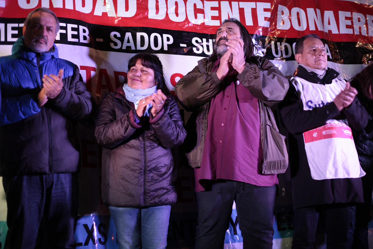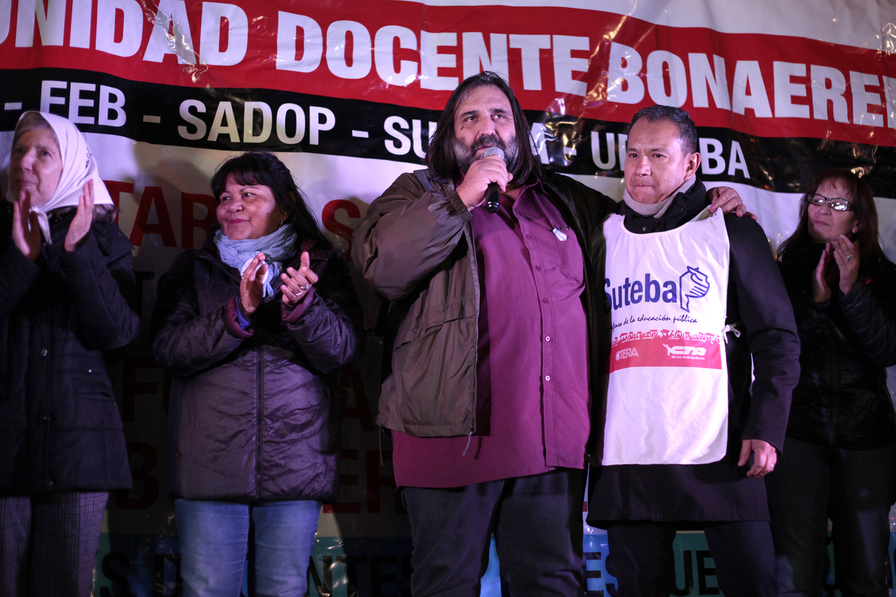 Lxs compañerxs de SUTEBA realizaron un Festival del que participó nuestro Secretario General y Adjunto de CTERA, Roberto Baradel, quien cerró el acto acompañado por su Secretaria General Adjunta, Silvia Almazán.