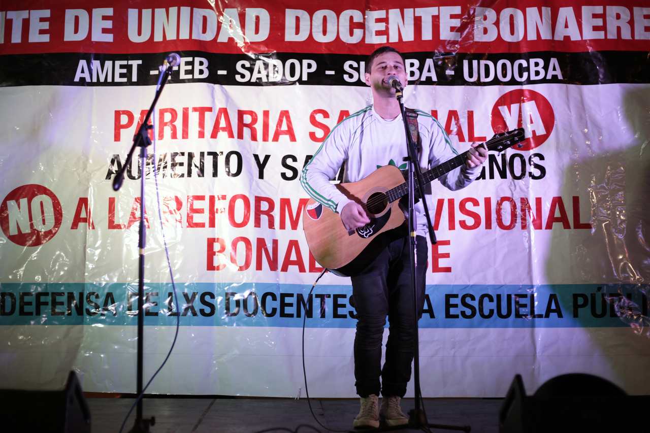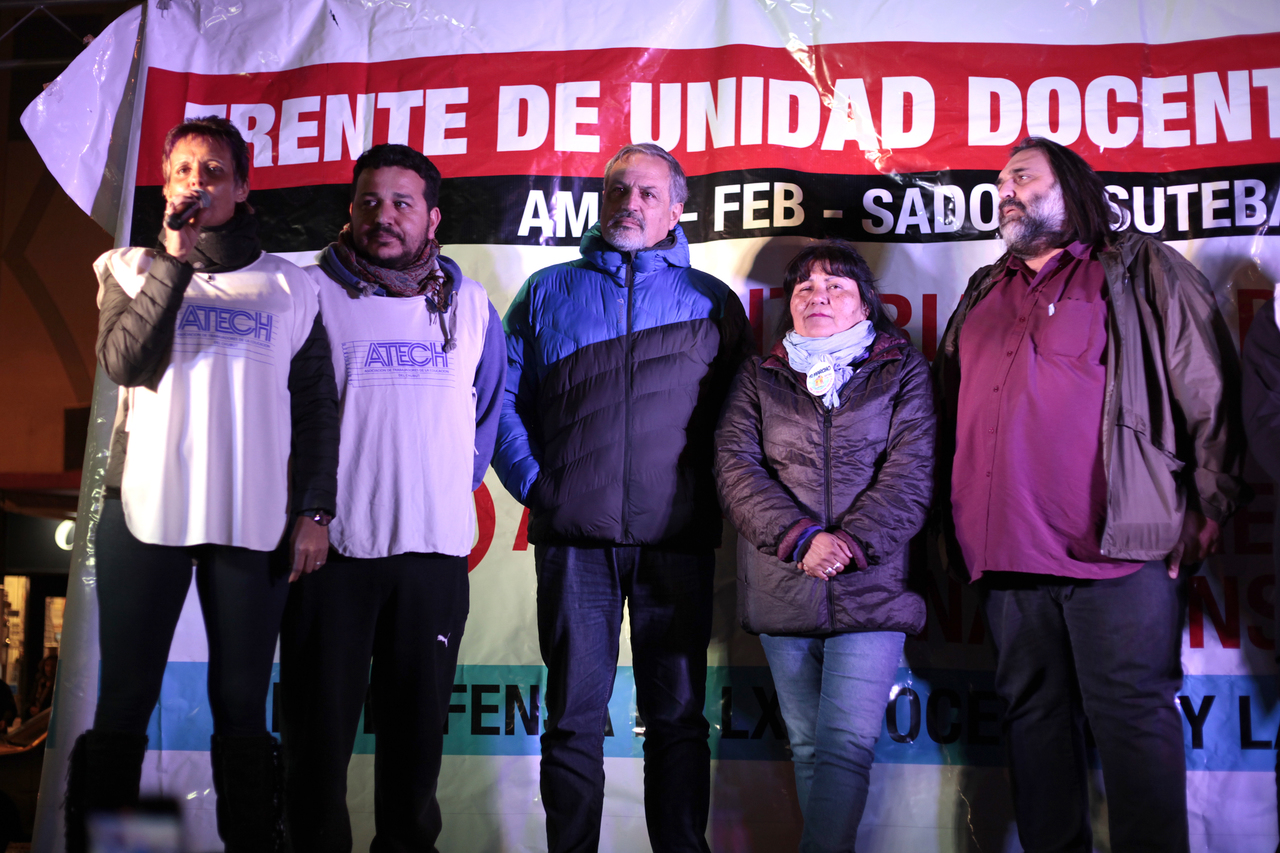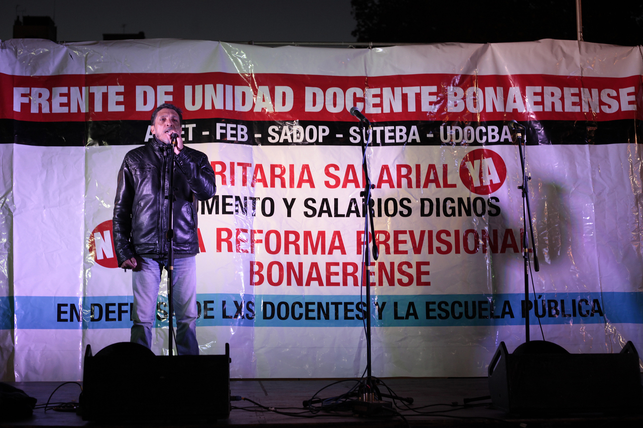 Lxs compañerxs de SUTEBA realizaron un Festival del que participó nuestro Secretario General y Adjunto de CTERA, Roberto Baradel, quien cerró el acto acompañado por su Secretaria General Adjunta, Silvia Almazán.