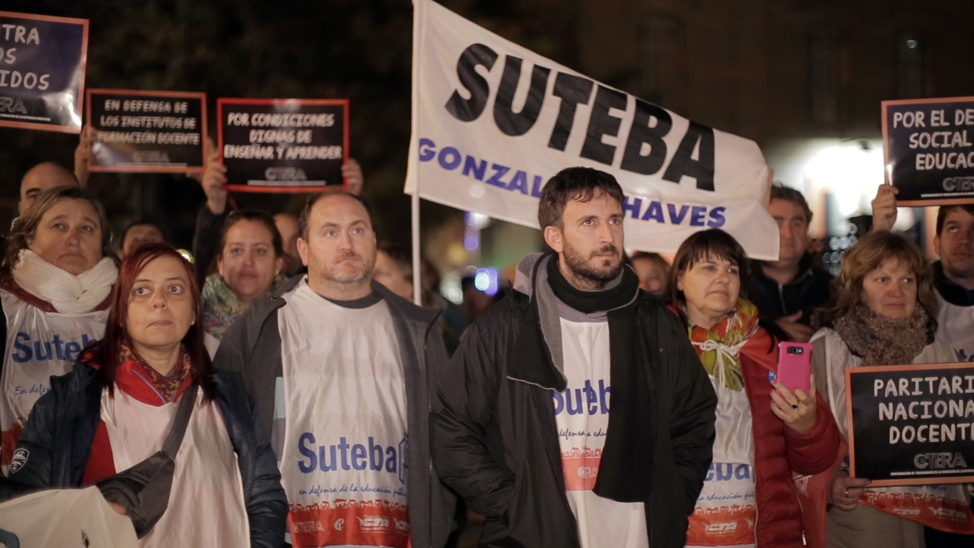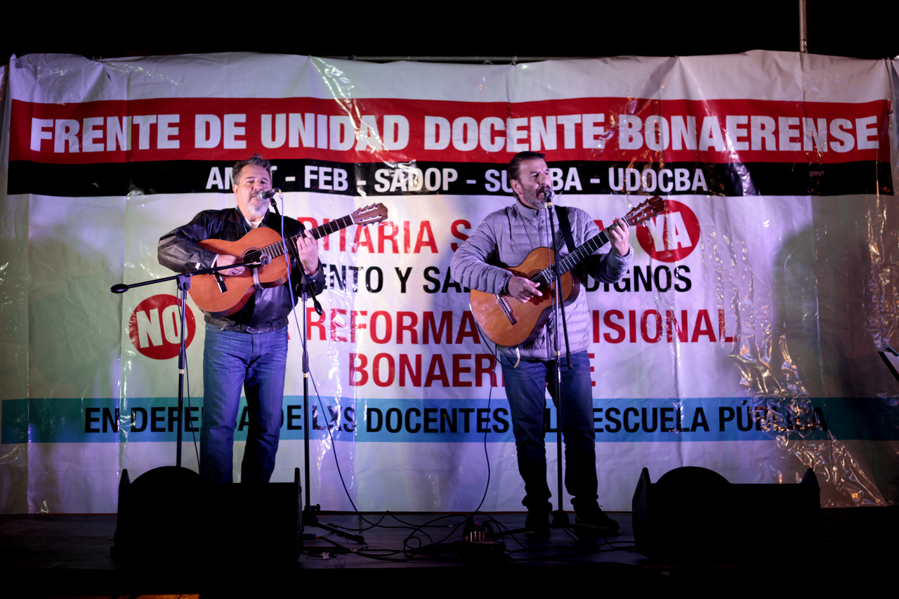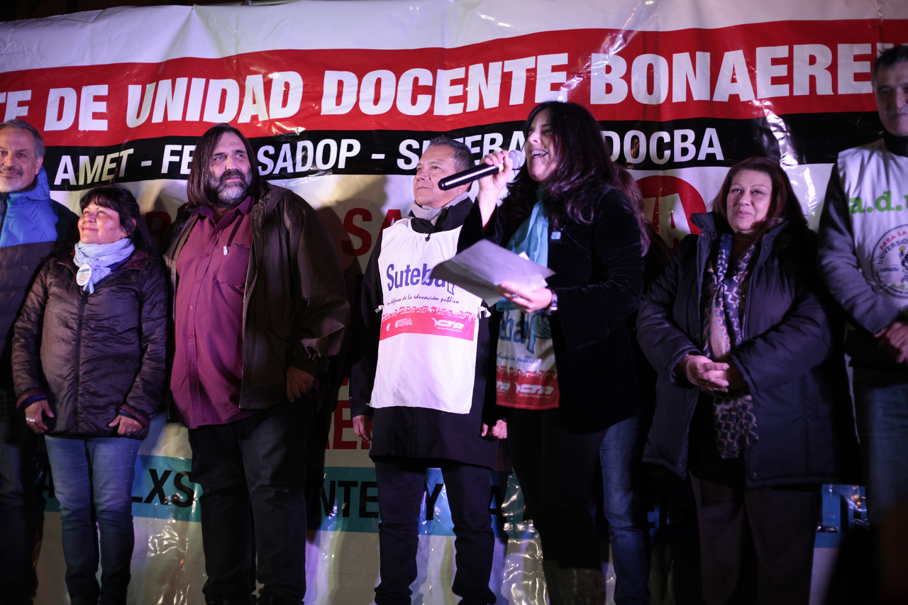 Lxs compañerxs de SUTEBA realizaron un Festival del que participó nuestro Secretario General y Adjunto de CTERA, Roberto Baradel, quien cerró el acto acompañado por su Secretaria General Adjunta, Silvia Almazán.