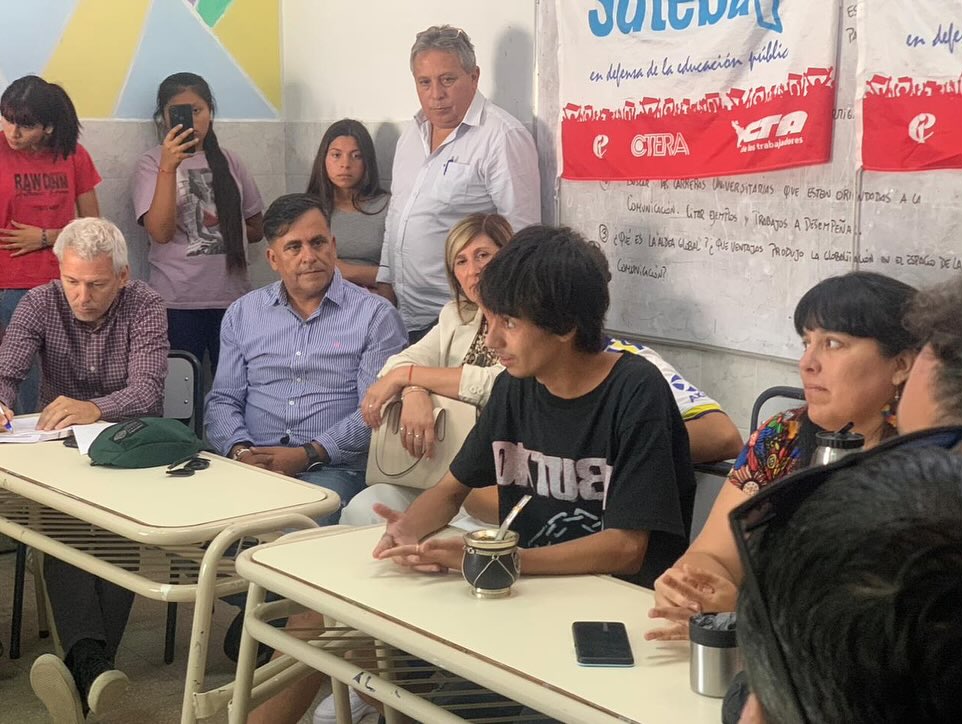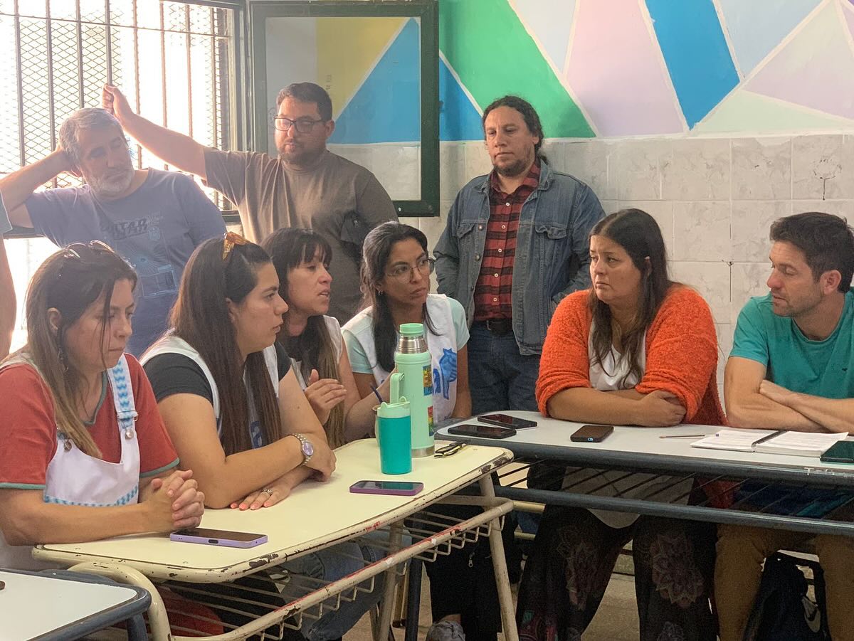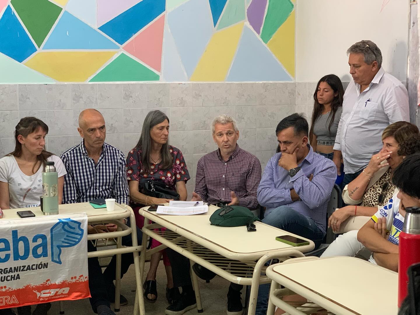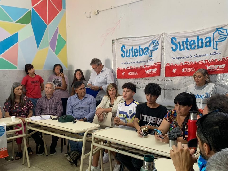 La reunión se llevó a cabo en la Secundaria 100 de González Catán, con la Subsecretaría Provincial de Infraestructura Escolar, el Consejo Escolar, Jefatura Regional, Delegadxs, y representantes docentes y de Centros de Estudiantes de las Escuelas afectadas.