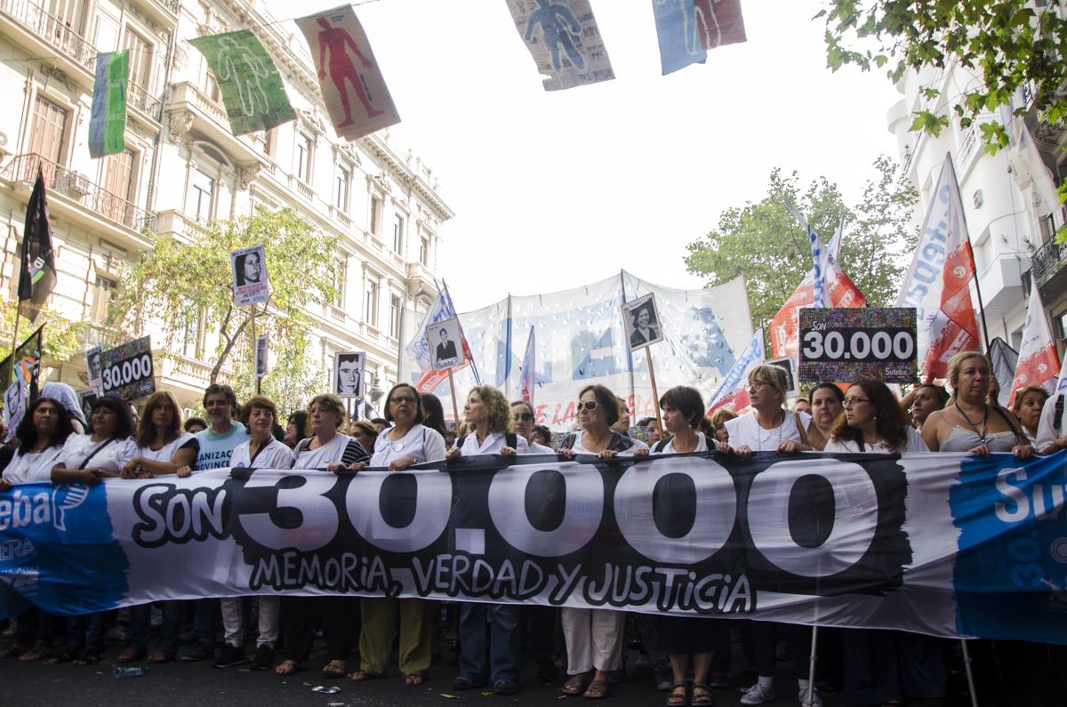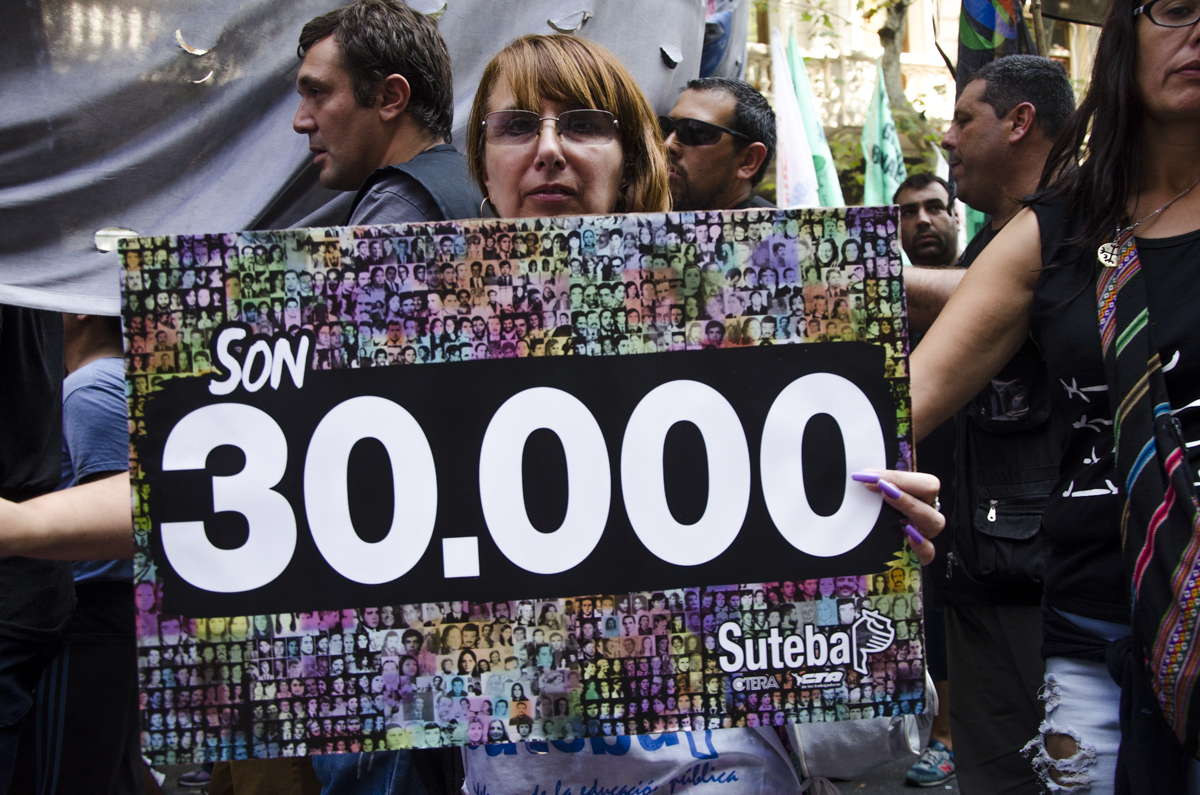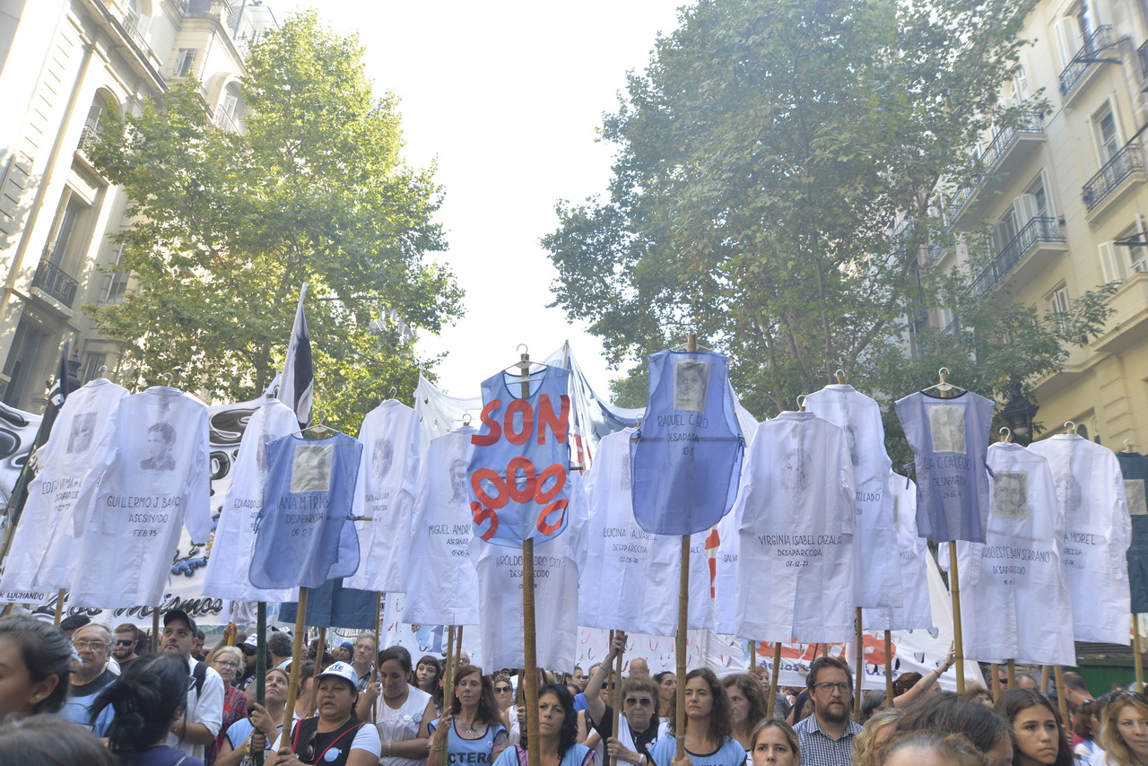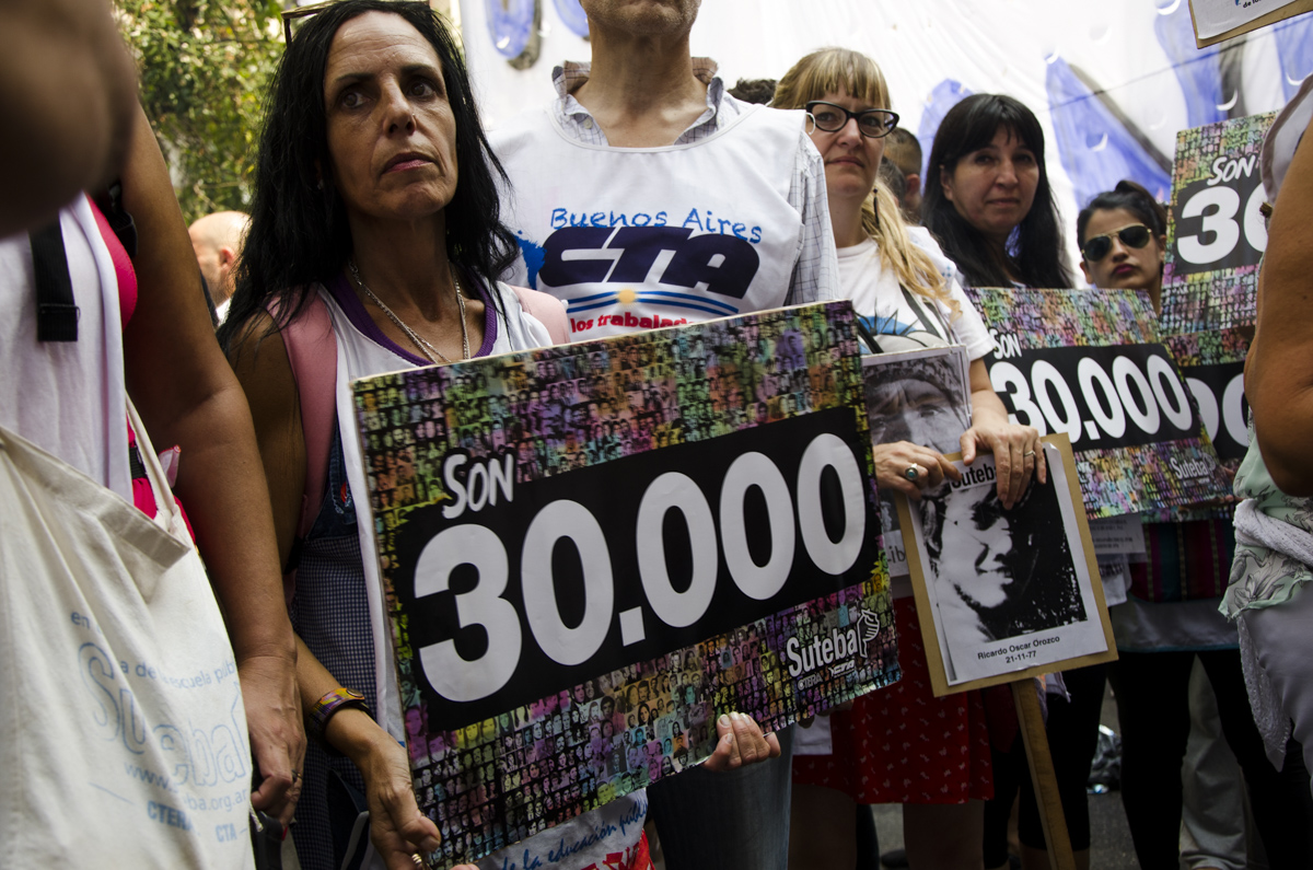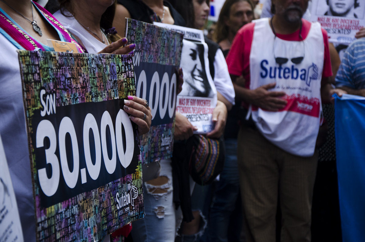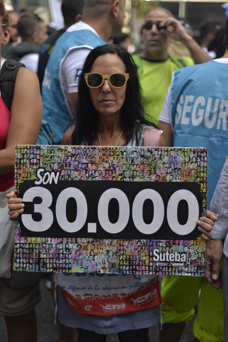 Marchamos también porque son 30.000 compañeros detenidos desaparecidos y no los olvidamos, porque son 30.000 y defendemos de corazón a los DDHH, porque son 30.000 y no habrá ningún Gobierno que nos haga retroceder.